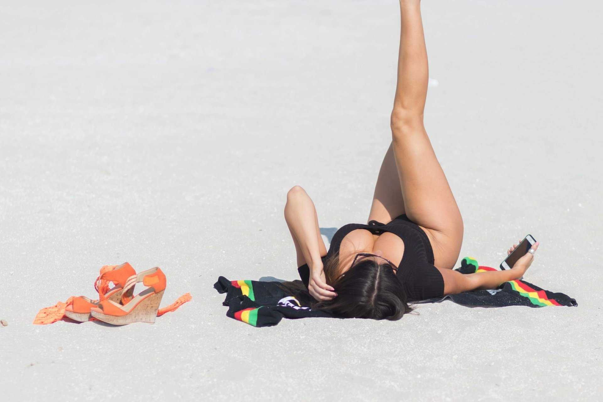Attached to: Claudia Romani in Black Swimsuit for Photoshoot at Miami Beach