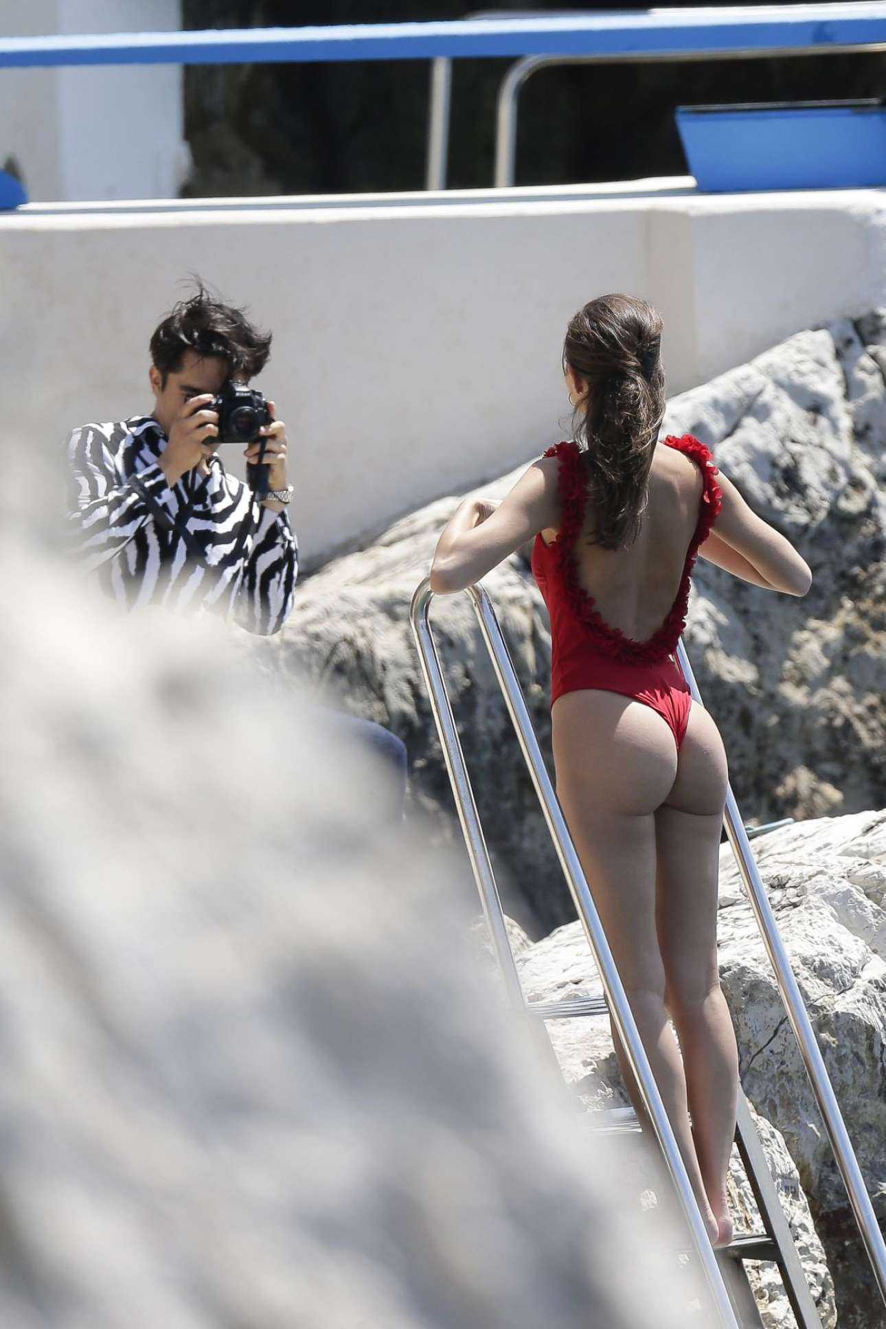 Daniela Lopez Osorio in Red Swimsuit at Hotel Cap Eden Roc in Antibes