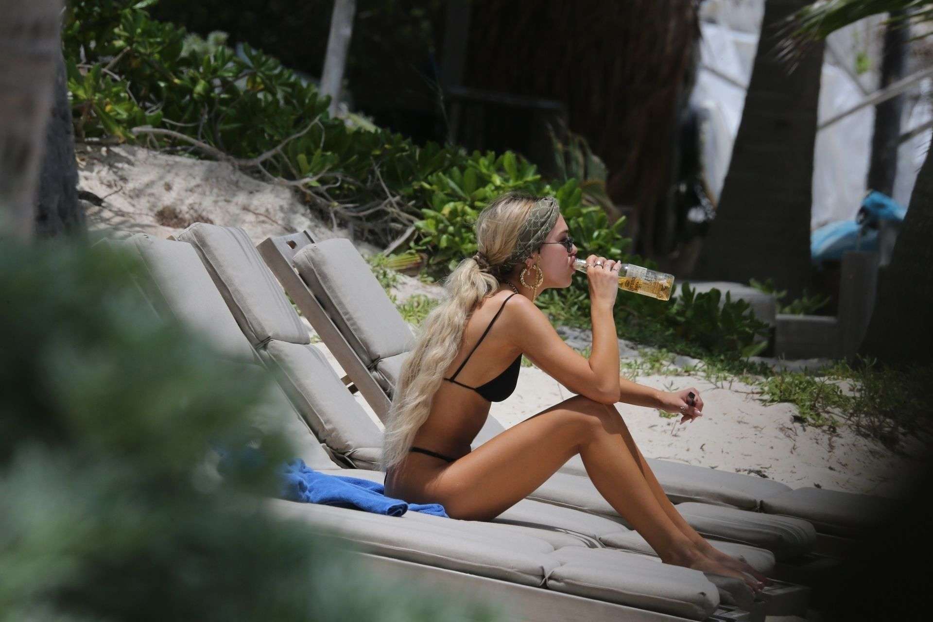 Delilah Belle Hamlin in Black Bikini on the Beach in Tulum