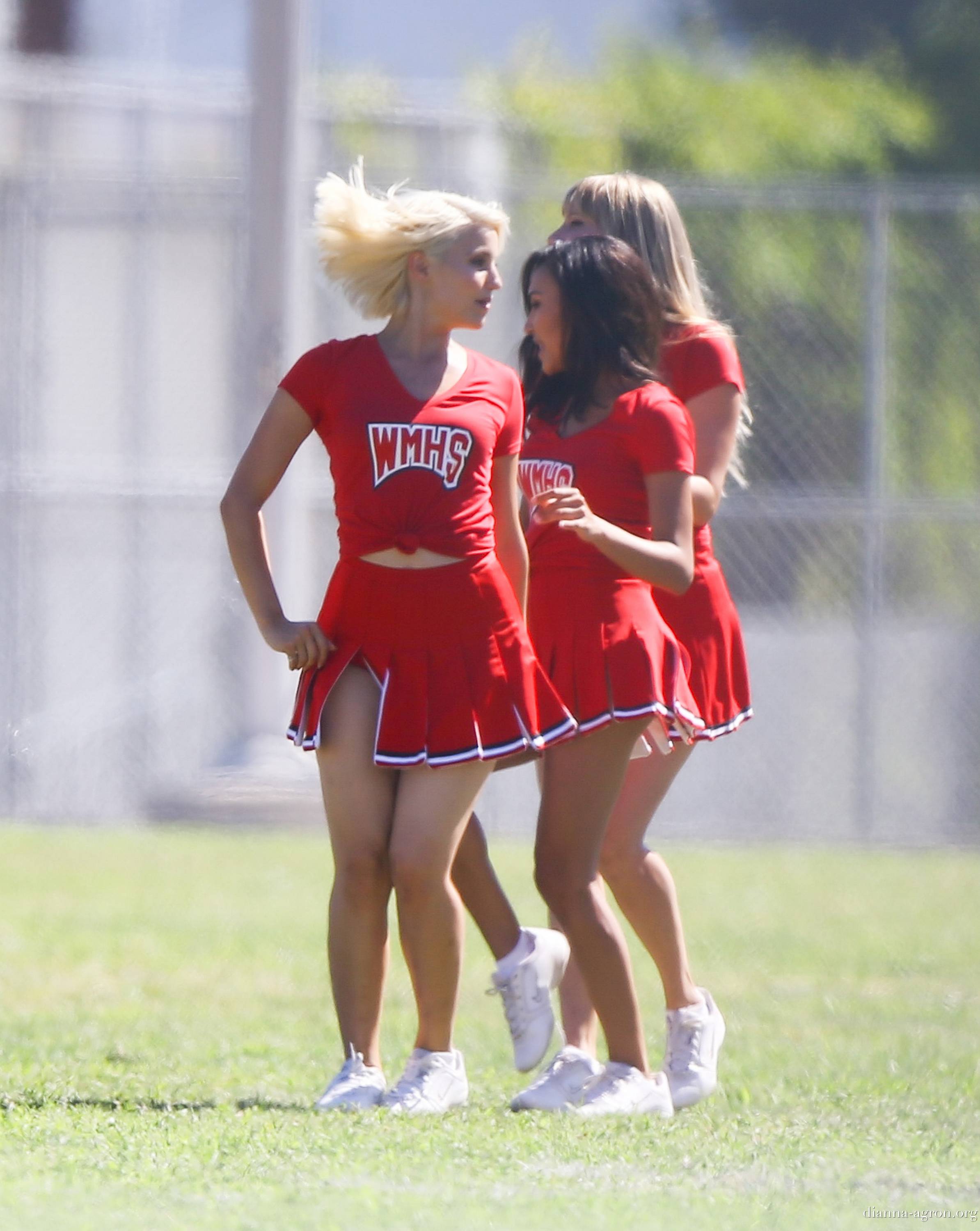 Dianna Agron, Naya Rivera and Heather Morris as Cheerleaders on Set of ‘Glee’ in Los Angeles