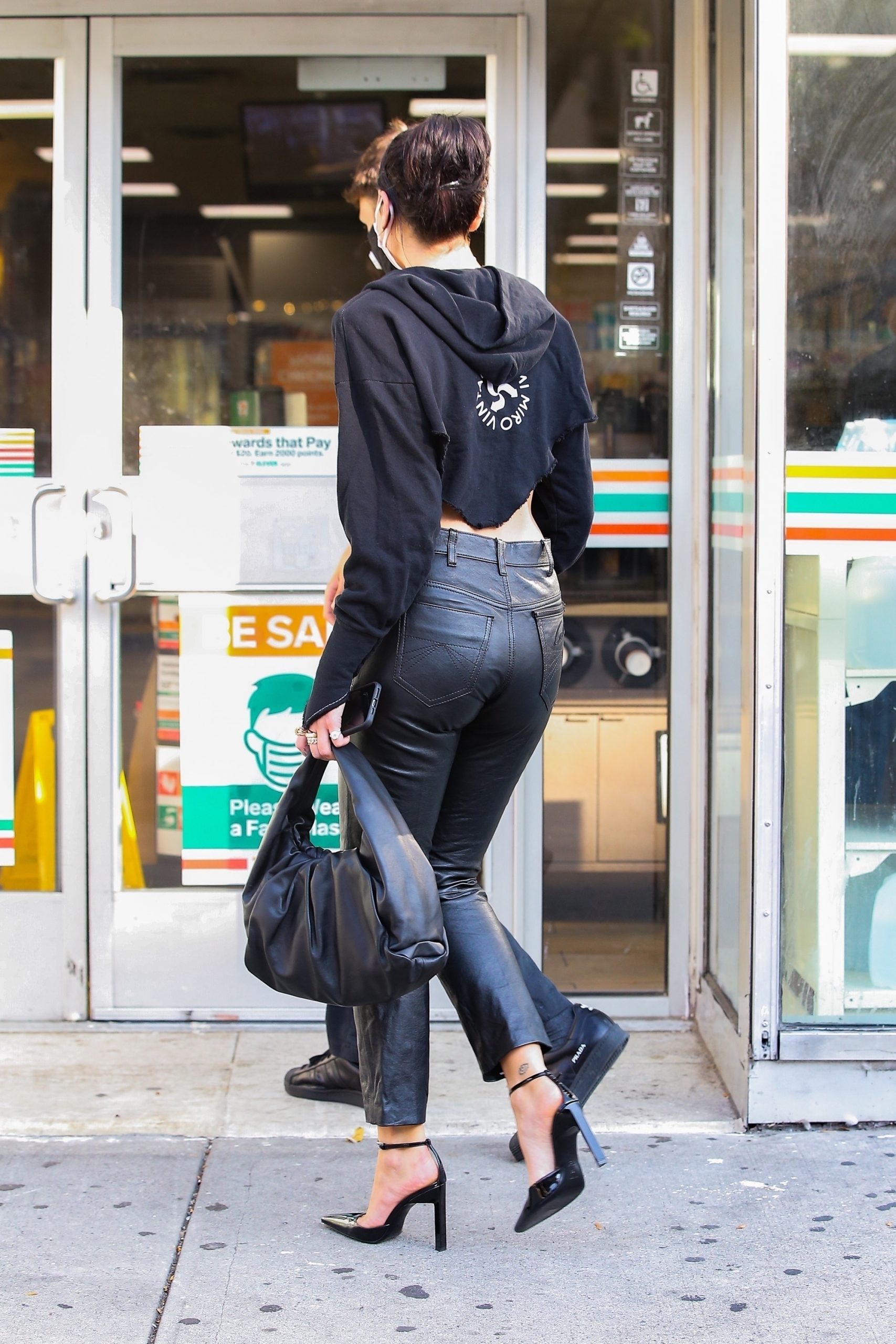 New York, NY – *EXCLUSIVE* Lovebirds Dua Lipa and Anwar Hadid seen smiling and holding hands in the Big Apple, New York. Dua shows off her curves in a crop top and high waisted leather pants.
