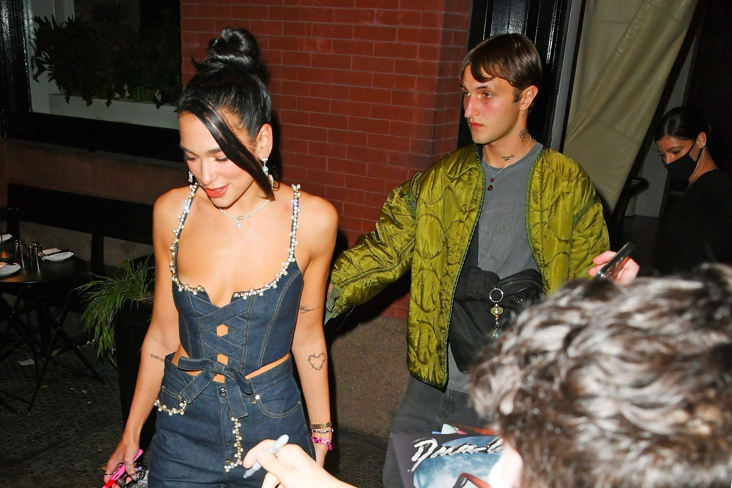Dua Lipa almost slips out of her top as she heads out with Anwar Hadid