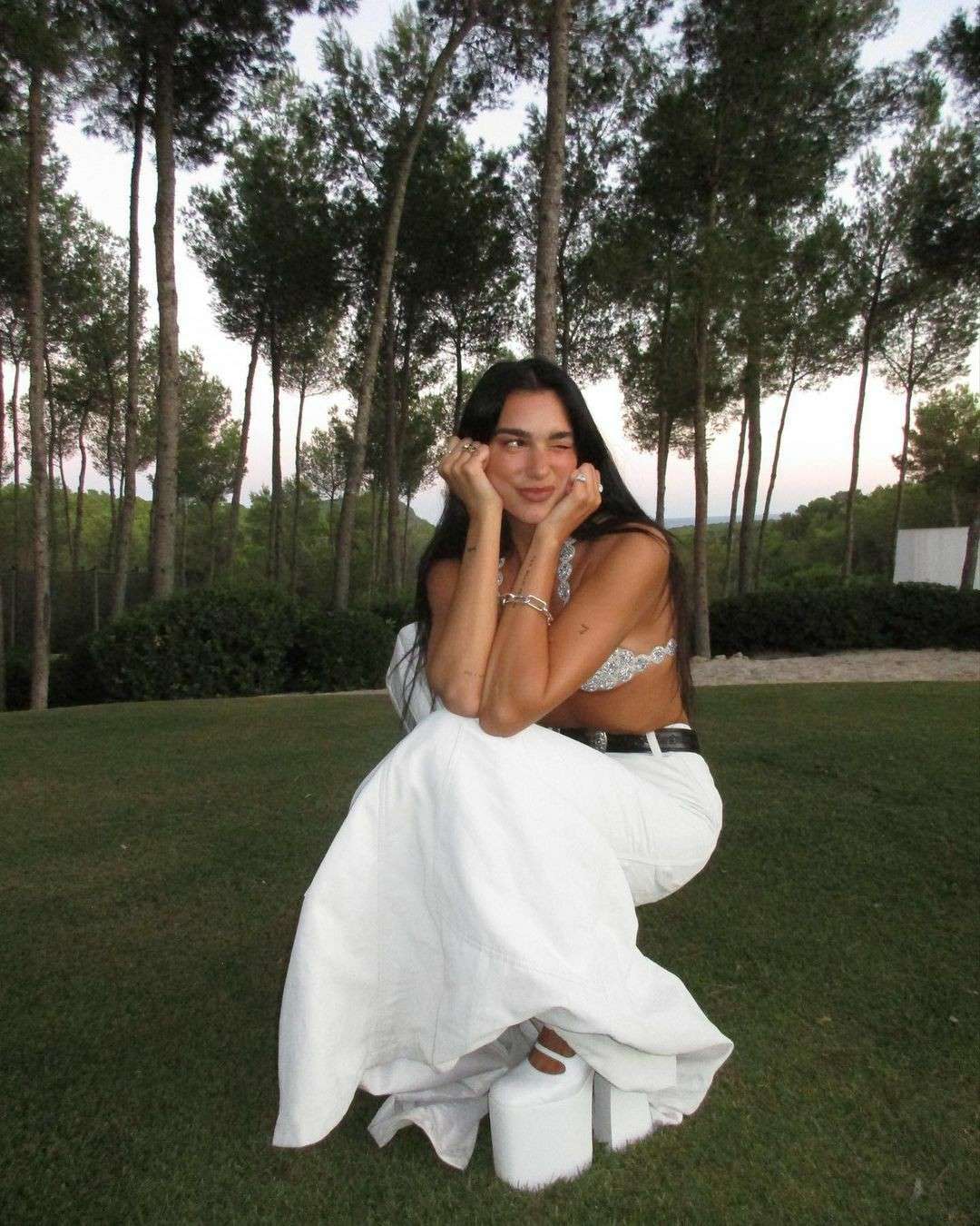 Dua Lipa Flaunts in Skimpy Top with Friends