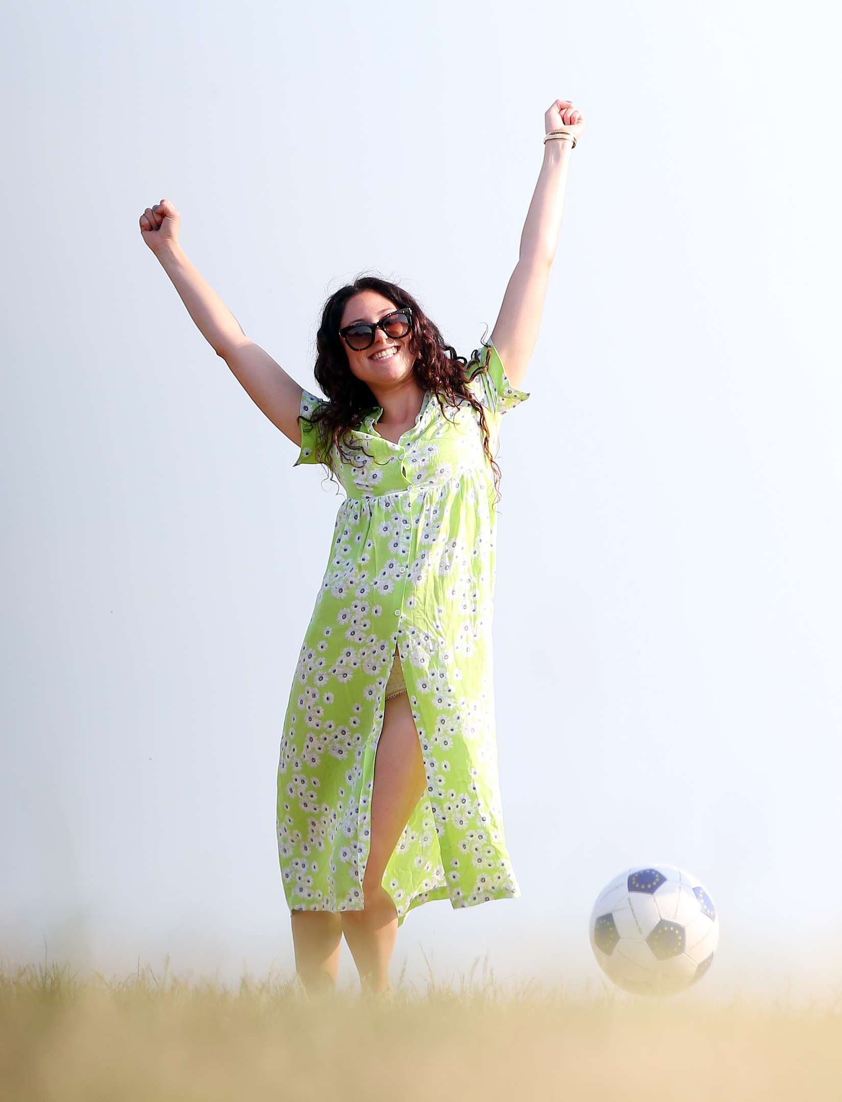 Tags: Green Dress, Kicking Ball, London
