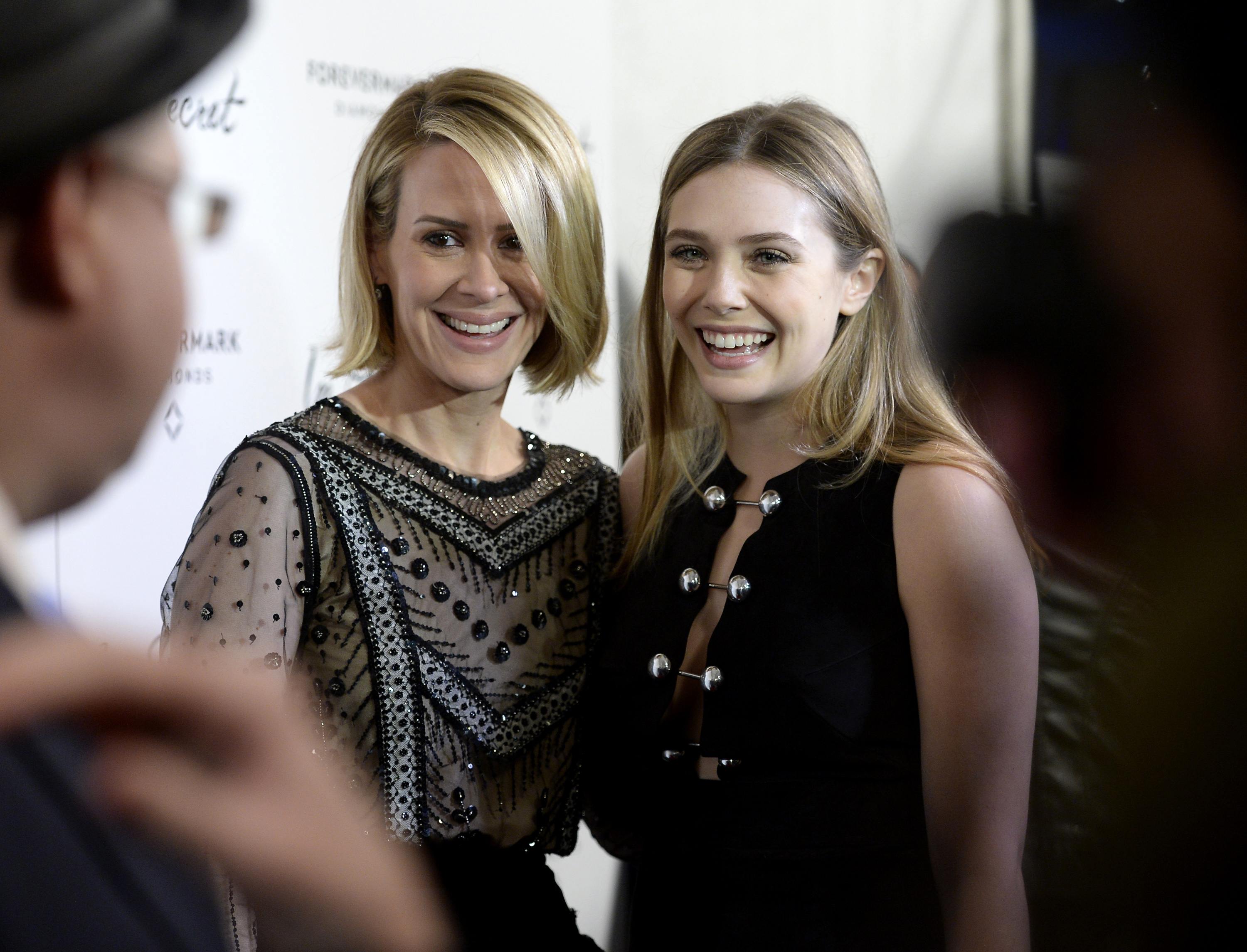 Cast member Elizabeth Olsen (R) and guest Sarah Paulson pose at the premiere of “In Secret” in Los Angeles, California February 6, 2014. The film opens in the U.S. on February 21. REUTERS/Kevork Djansezian (UNITED STATES – Tags: ENTERTAINMENT)