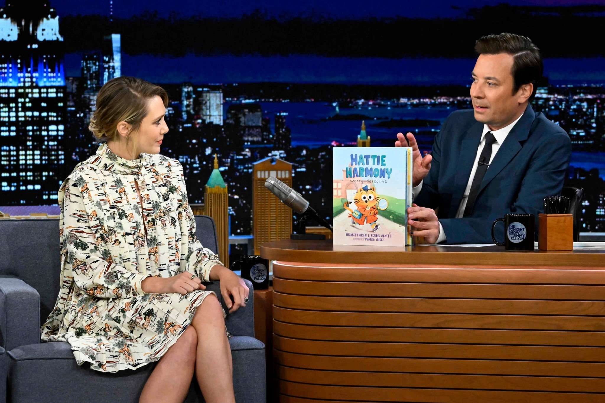Elizabeth Olsen in Frock on “The Tonight Show Starring Jimmy Fallon” in NYC