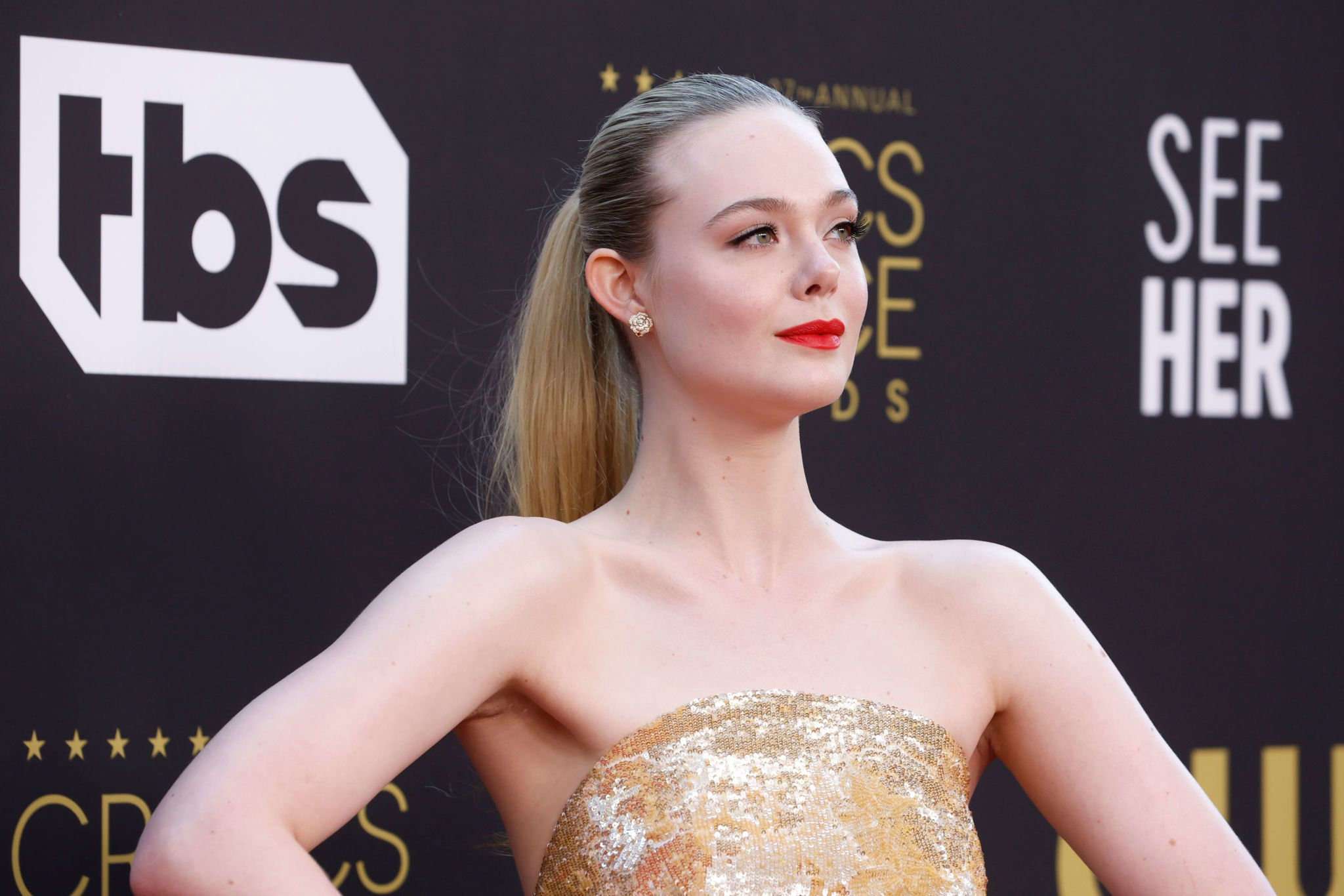 Elle Fanning Cleavage at 27th Annual Critics Choice Awards in Los Angeles