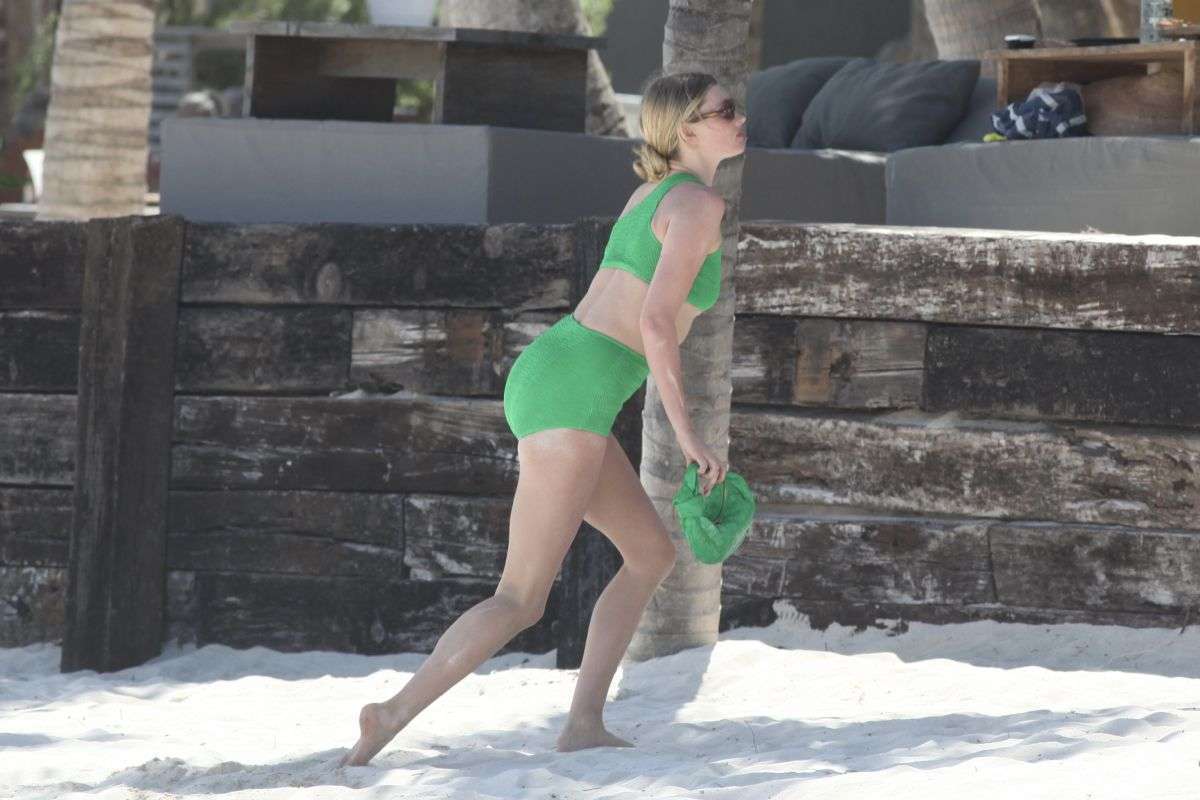 Elsa Hosk Booty in a Green Bikini at a Beach in Tulum