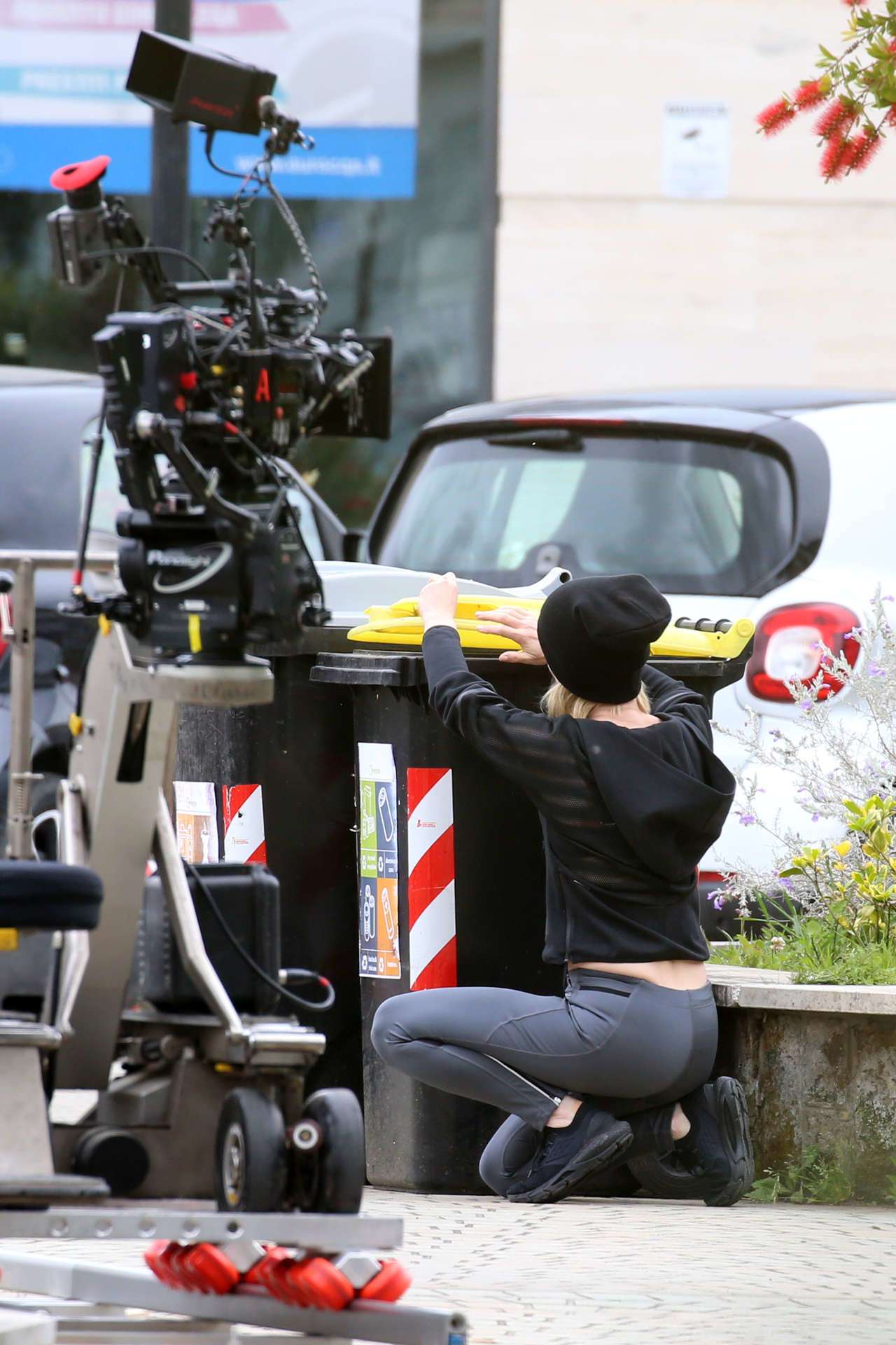 Emilia Fox filming the TV series “Signora Volpe” directed by British Director Dudi Appleton in Rome, Italy At one point, Emilia is seen pulling the dead pigeon from under her jacket and then puts it in a bin.