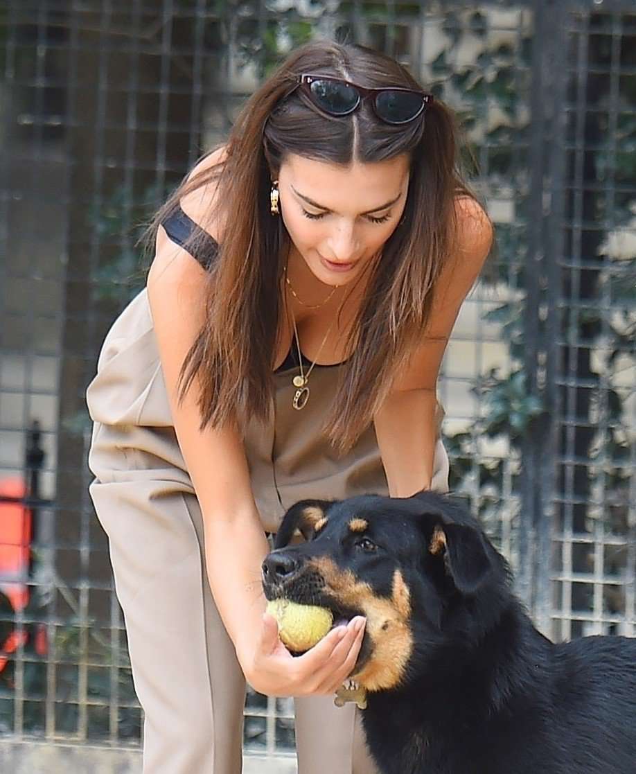 Attached to: Emily Ratajkowski Playing Fetch with Dog in New York
