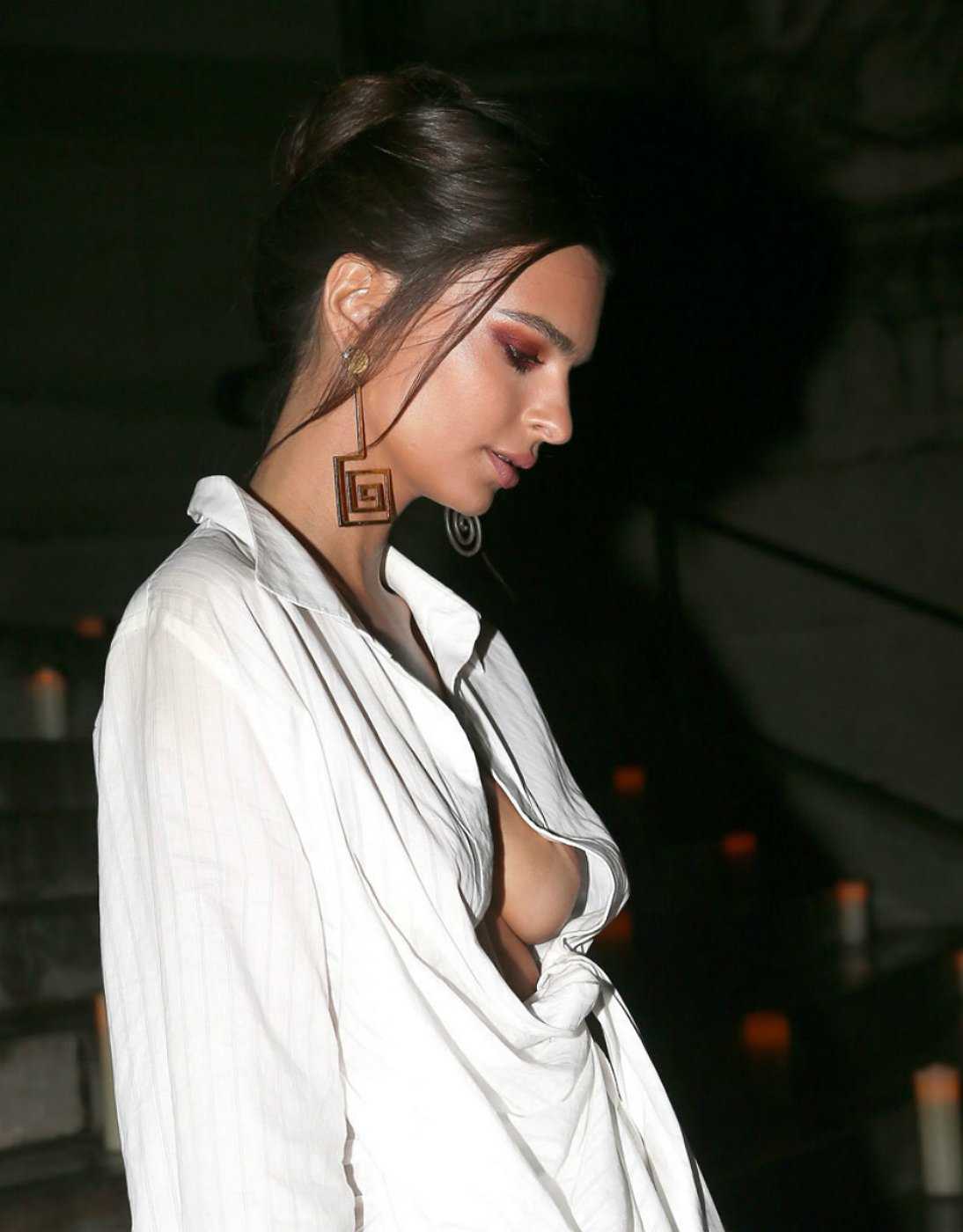Attached to: Emily Ratajkowski wearing a Deep Cleavage Shirt in Paris