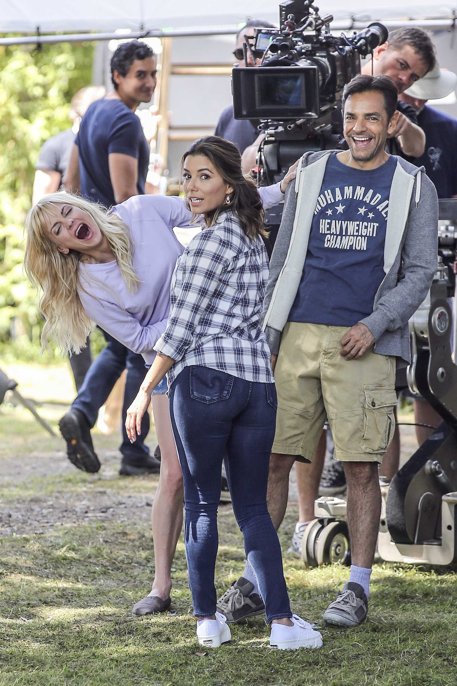 Eva Longoria Booty in Jeans and Anna Faris on the Set of ‘Overboard’ in Vancouver