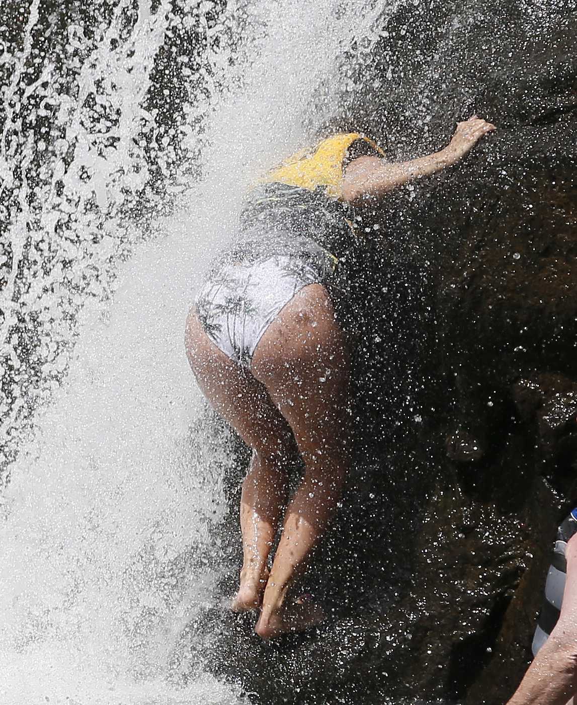 Eva Longoria in Swimsuit under a Fountain in Hawaii