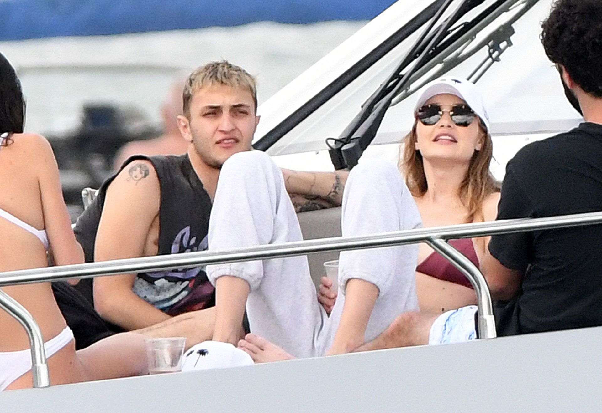 Gigi Hadid in Maroon Bikini on a Yacht in Miami