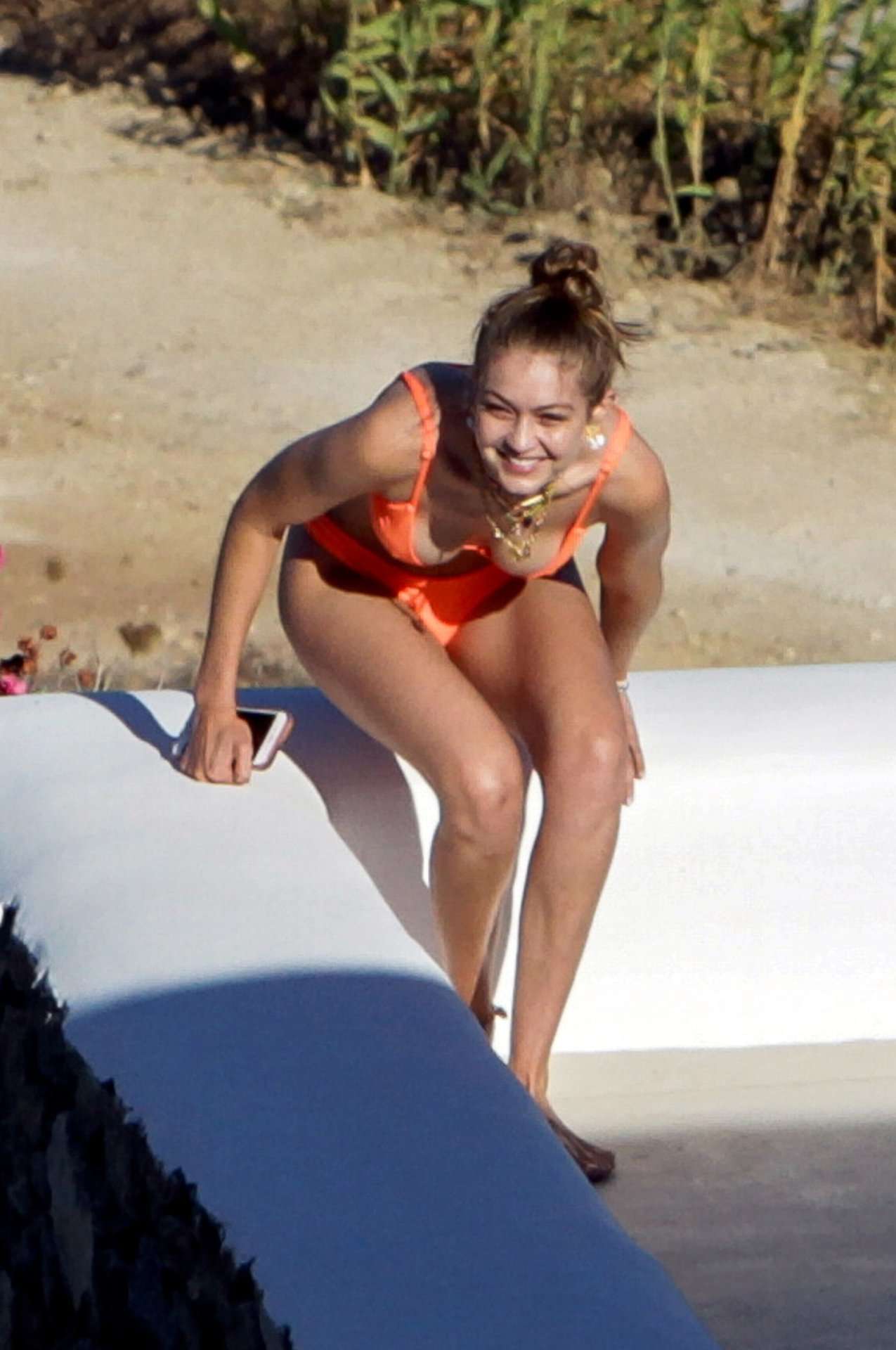 Attached to: Gigi Hadid in Orange Bikini in Mykonos