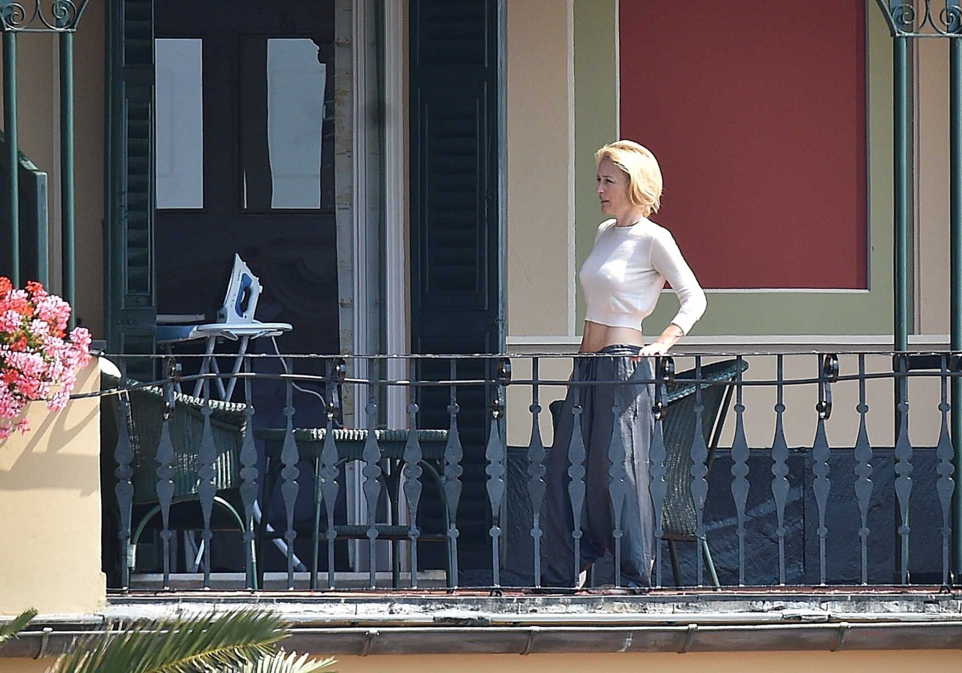 Gillian Anderson Braless See-through Top at her Hotel in Portofino, Italy