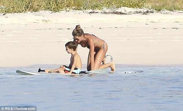 Gisele Bundchen in Bikini Paddleboarding in the Bahamas