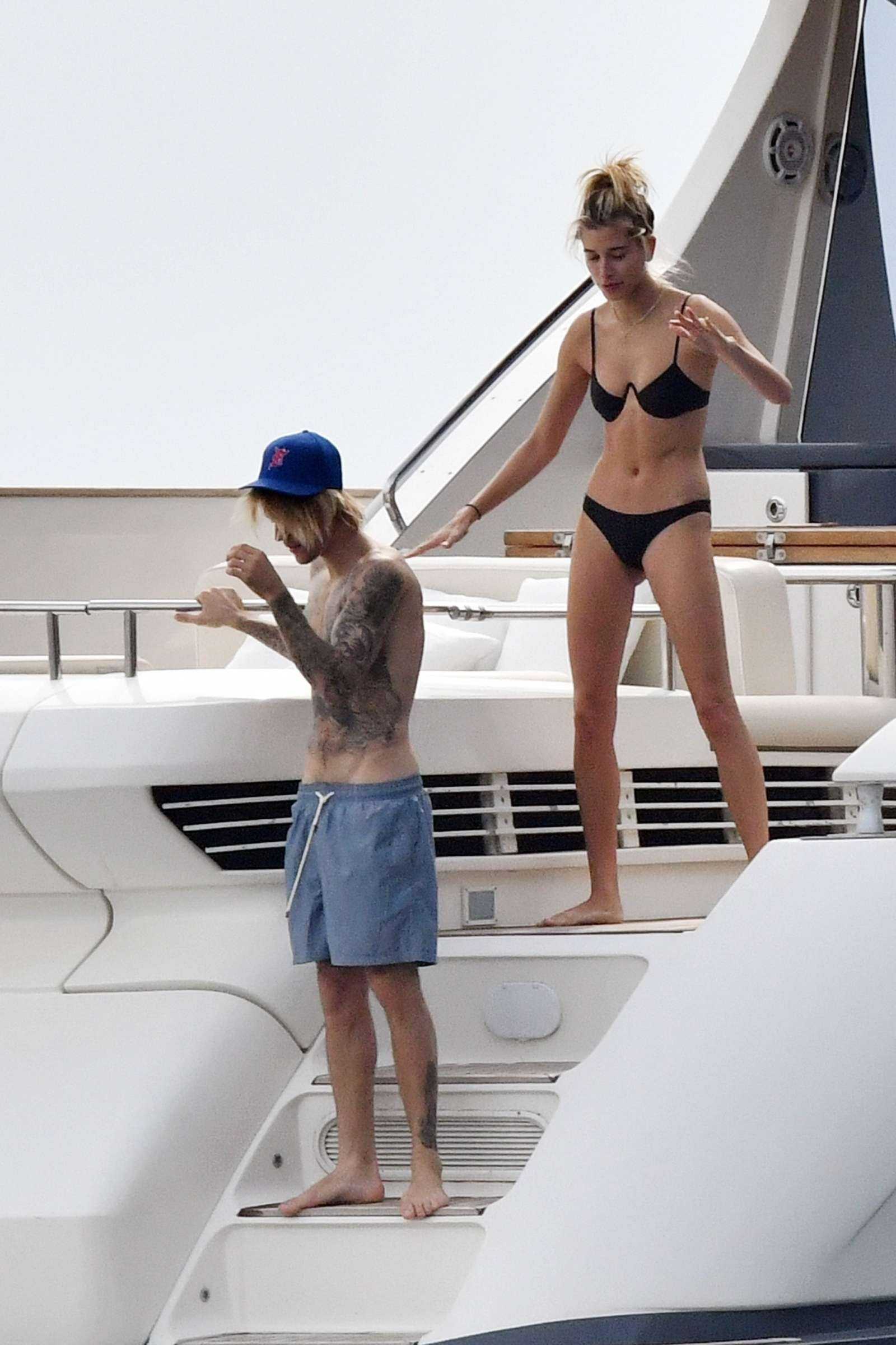 Hailey Baldwin in Bikini with Justin Bieber at a Yacht in Italy