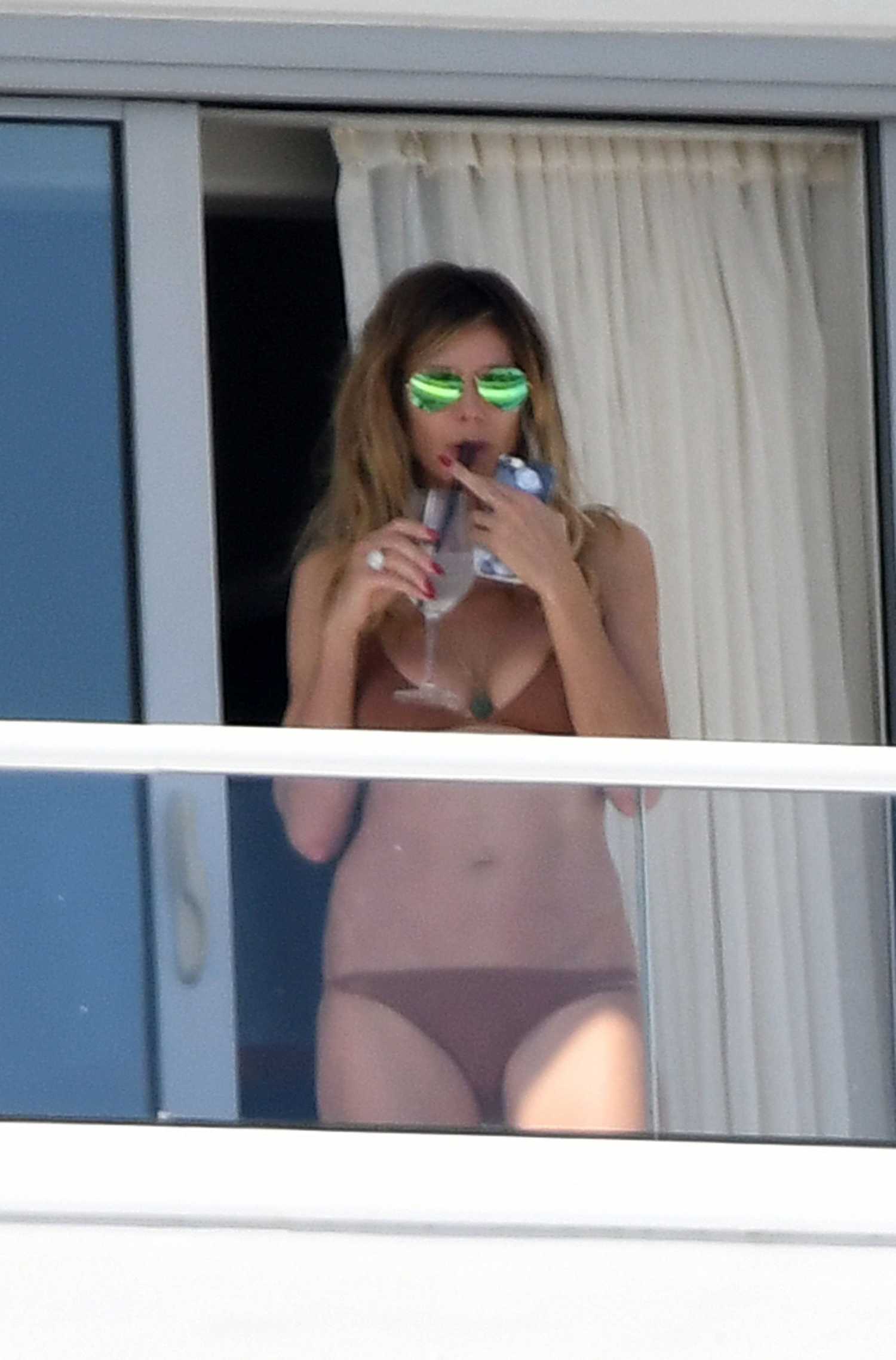 Heidi Klum in Bikini on a Hotel Balcony in Miami