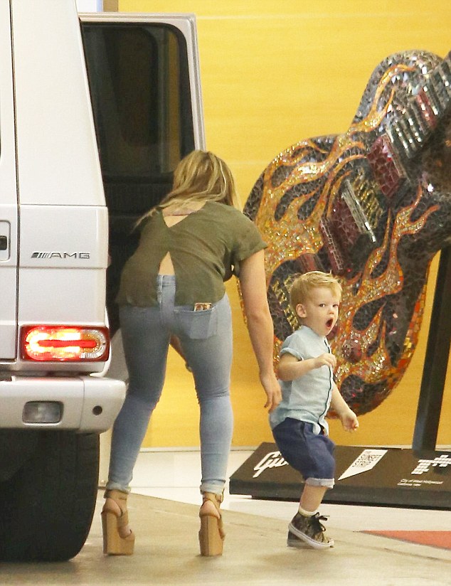 Hilary Duff in skin tight jeans taking Luca to lunch in Beverly Hills April 27, 2014 X17online.com EXCL