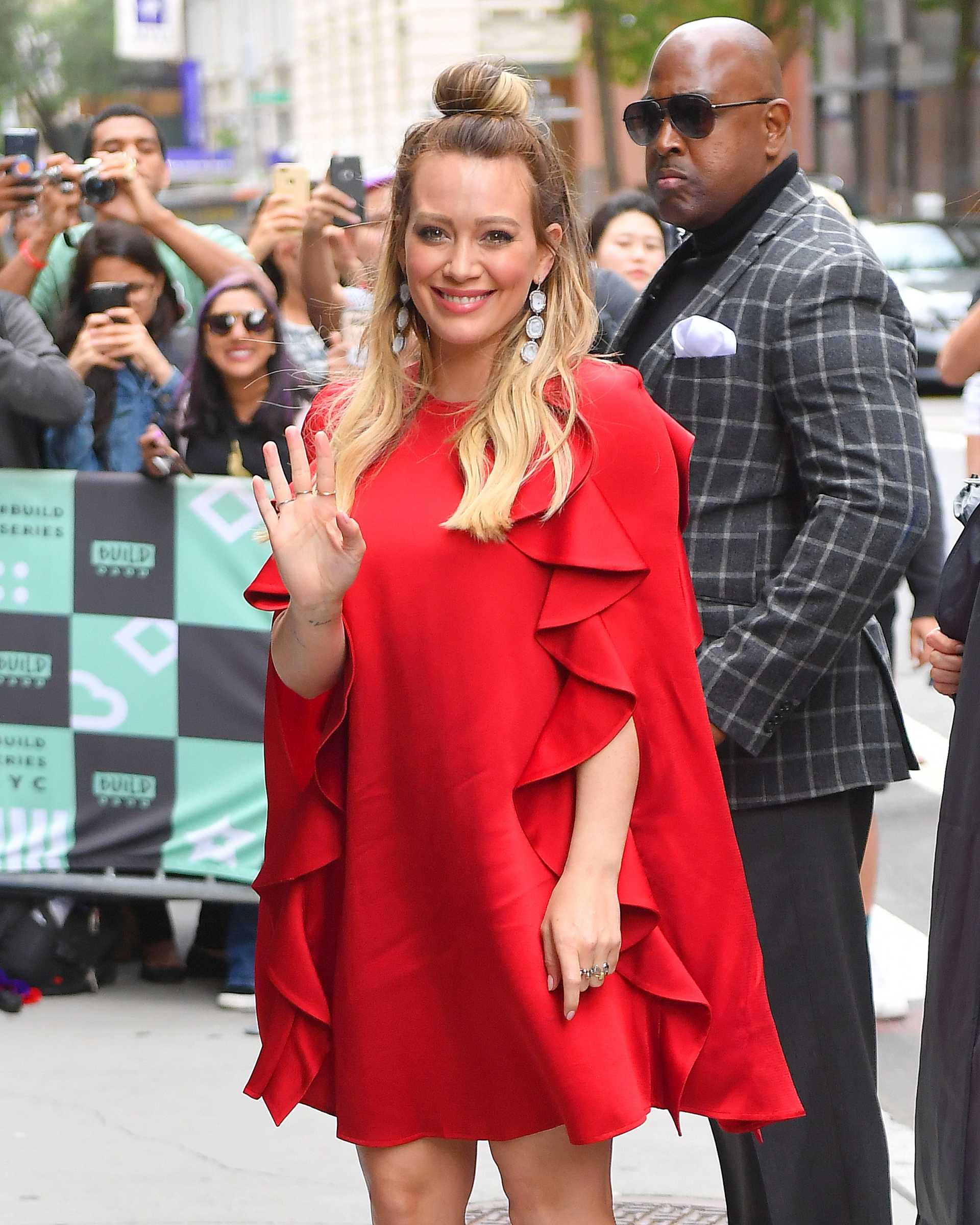 Hilary Duff in Red Dress Outside AOL Build in NYC