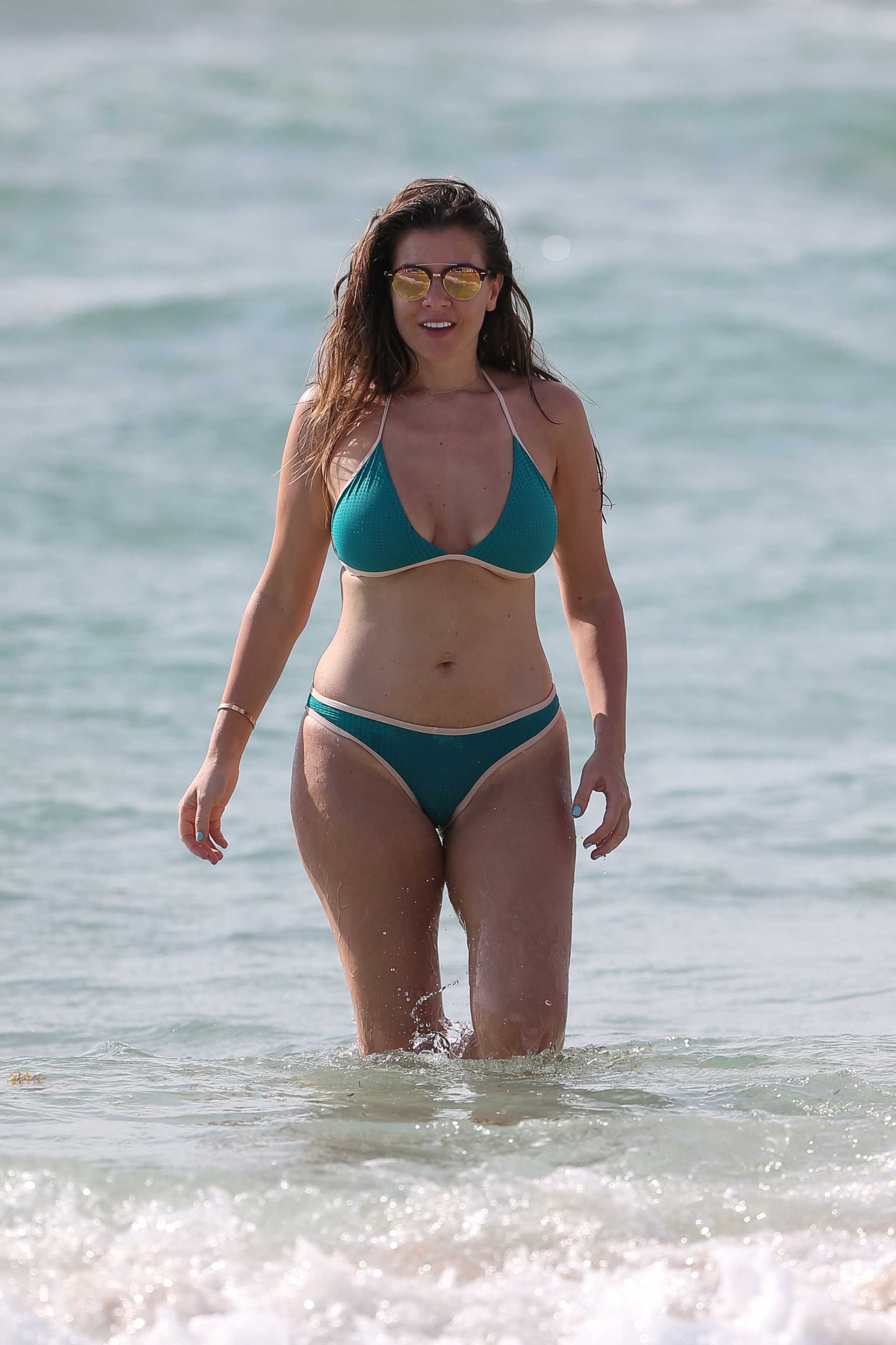 Imogen Thomas in Teal Bikini on a Beach in Spain
