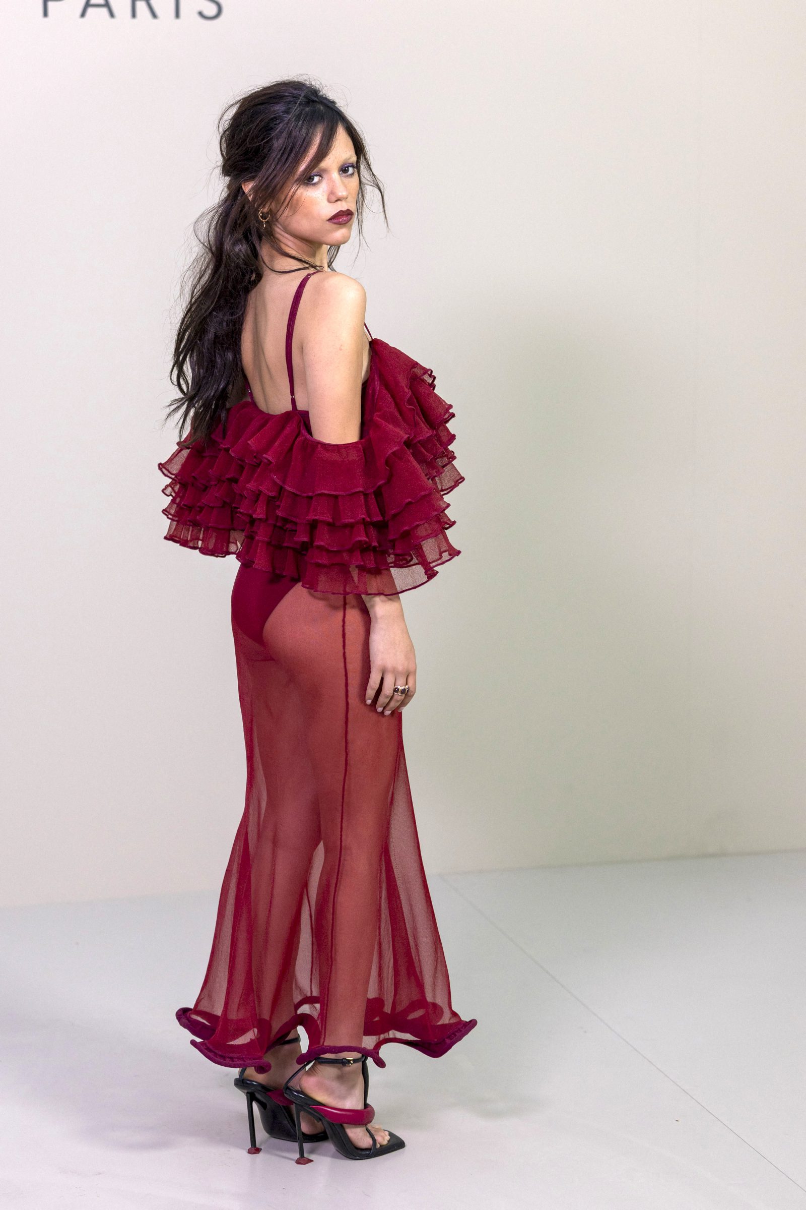 Jenna Ortega Booty in Sheer Red Givenchy Gown