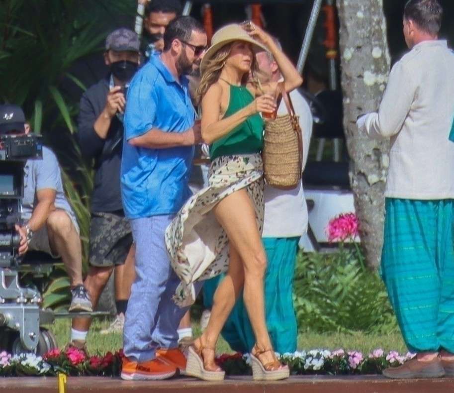 Jennifer Aniston Upskirt, Leggy and Pokies on Murder Mystery 2 Movie Set in Hawaii