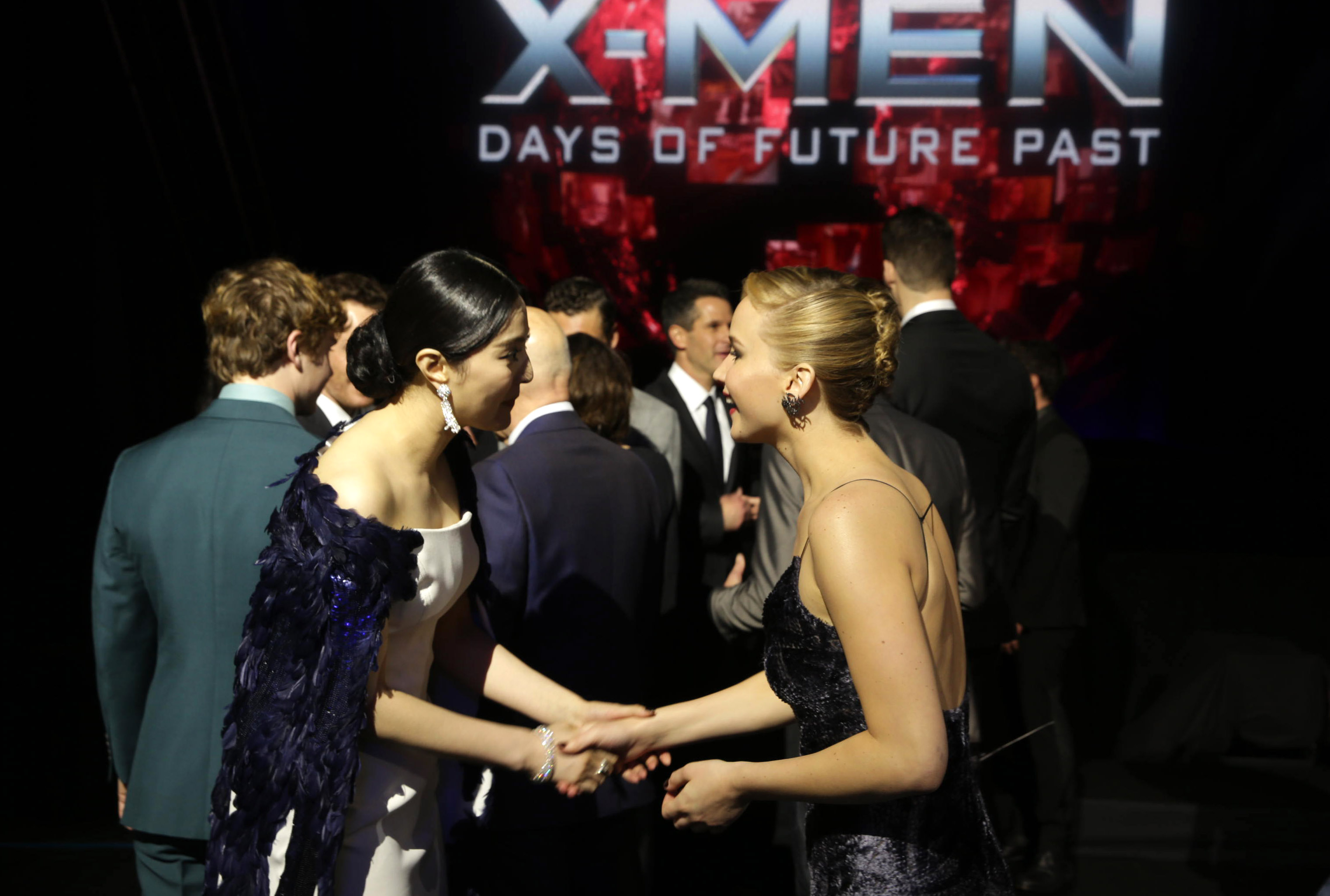 Bingbing Fan and Jennifer Lawrence seen at the Twentieth Century Fox Global Premiere of ‘X-Men: Days of Future Past’ held at the Jacob K. Javits Convention Center on Saturday, May 10, 2014, in New York City. (Photo by Eric Charbonneau/Invision for Twentieth Century Fox/AP Images)