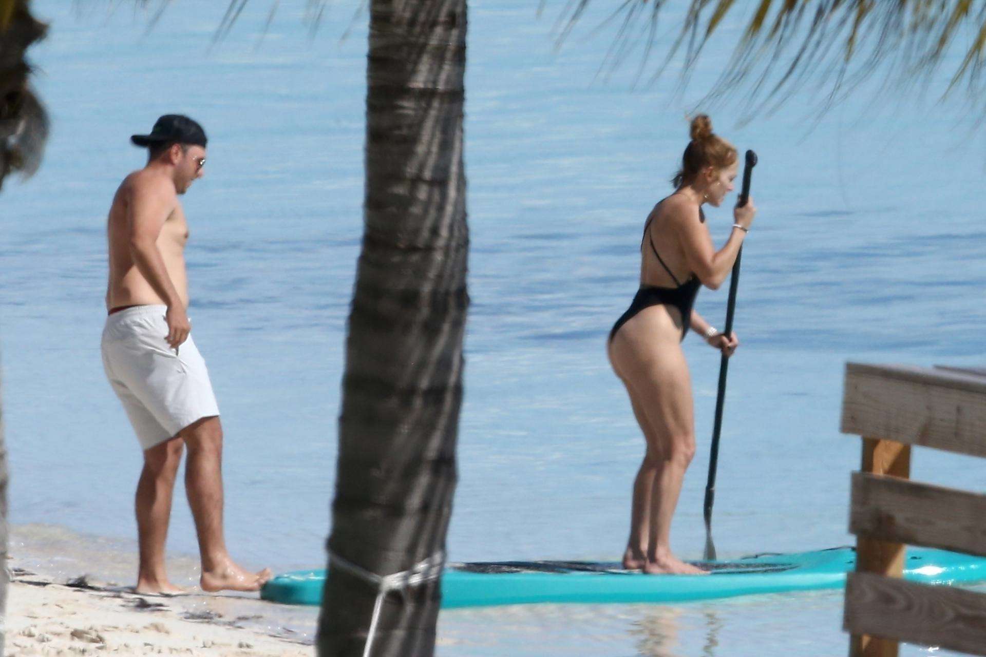 Jennifer Lopez Booty in a Black Swimsuit on the Beach in Turks and Caicos
