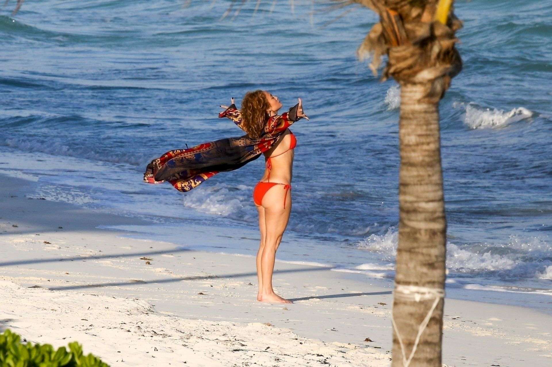 Jennifer Lopez Booty in Red Bikini at the Beach in Turk and Caicos