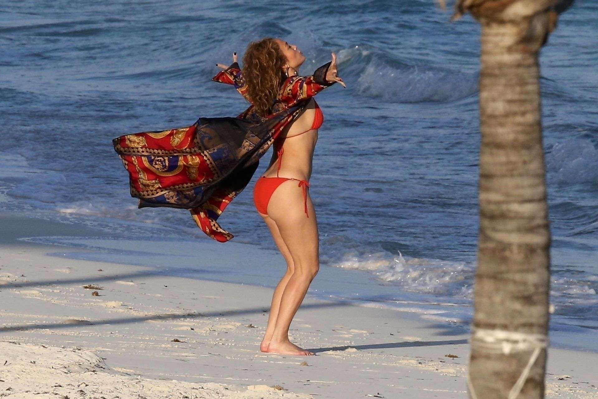 Attached to: Jennifer Lopez Booty in Red Bikini at the Beach in Turk and Caicos