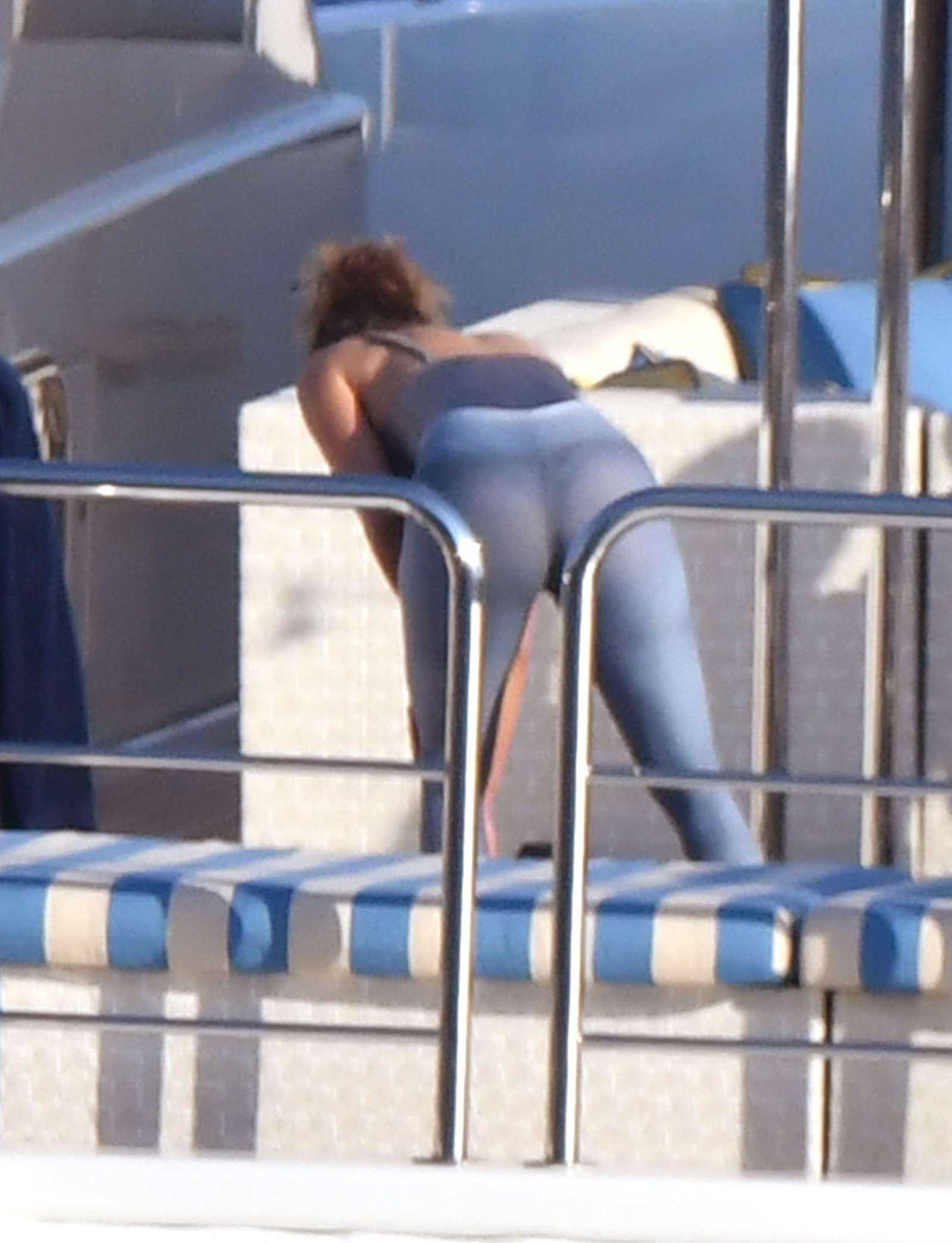 Jennifer Lopez in Green Swimsuit on a Yacht in Italy