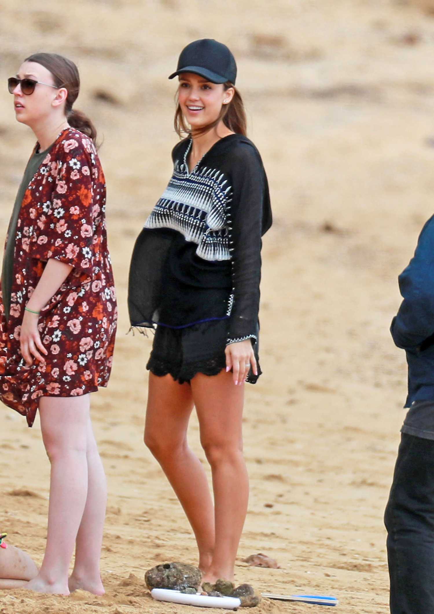 Jessica Alba in Black Swimsuit at Beach in Hawaii