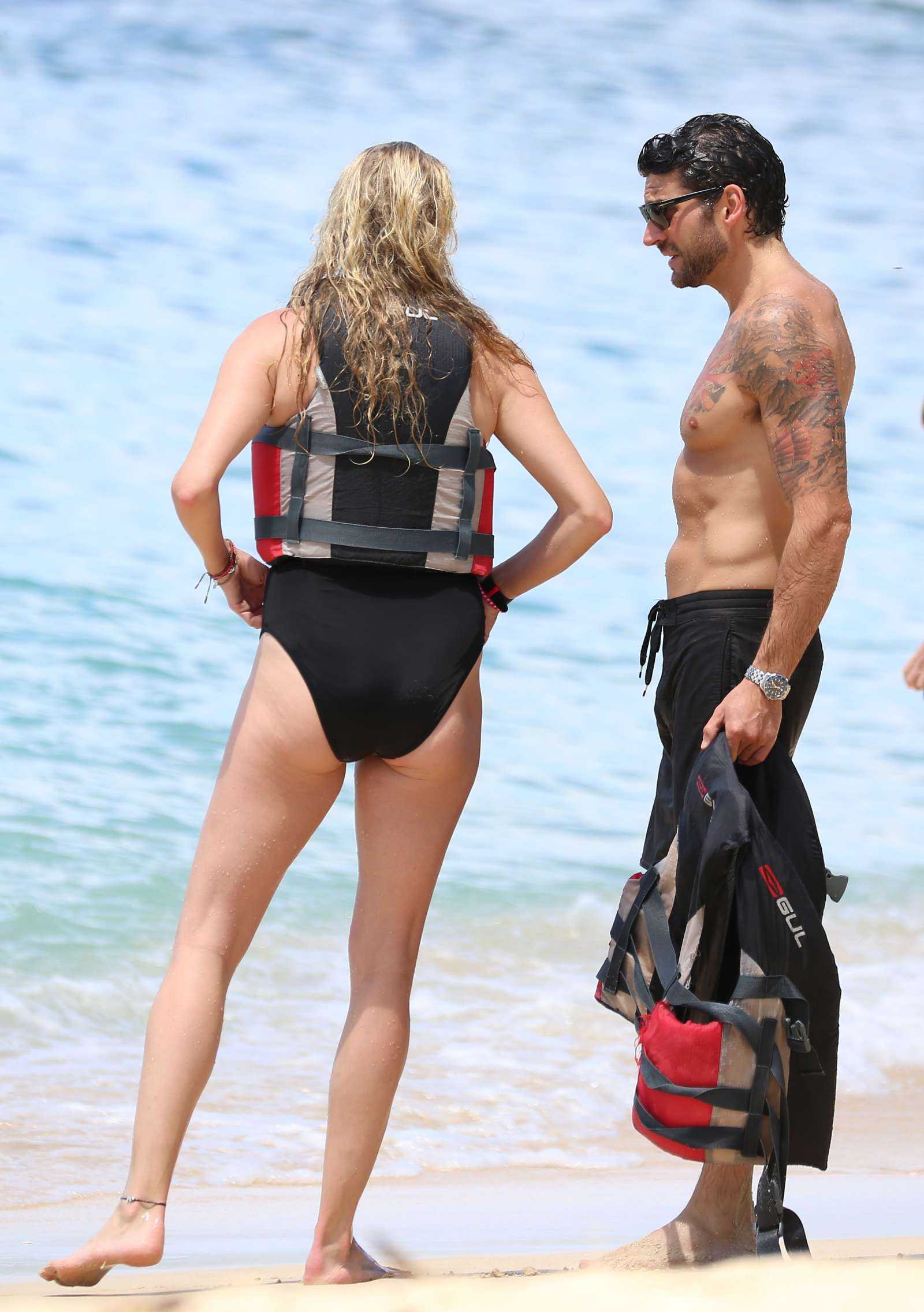 Jodie Kidd in Black Swimsuit at Beach in Barbados