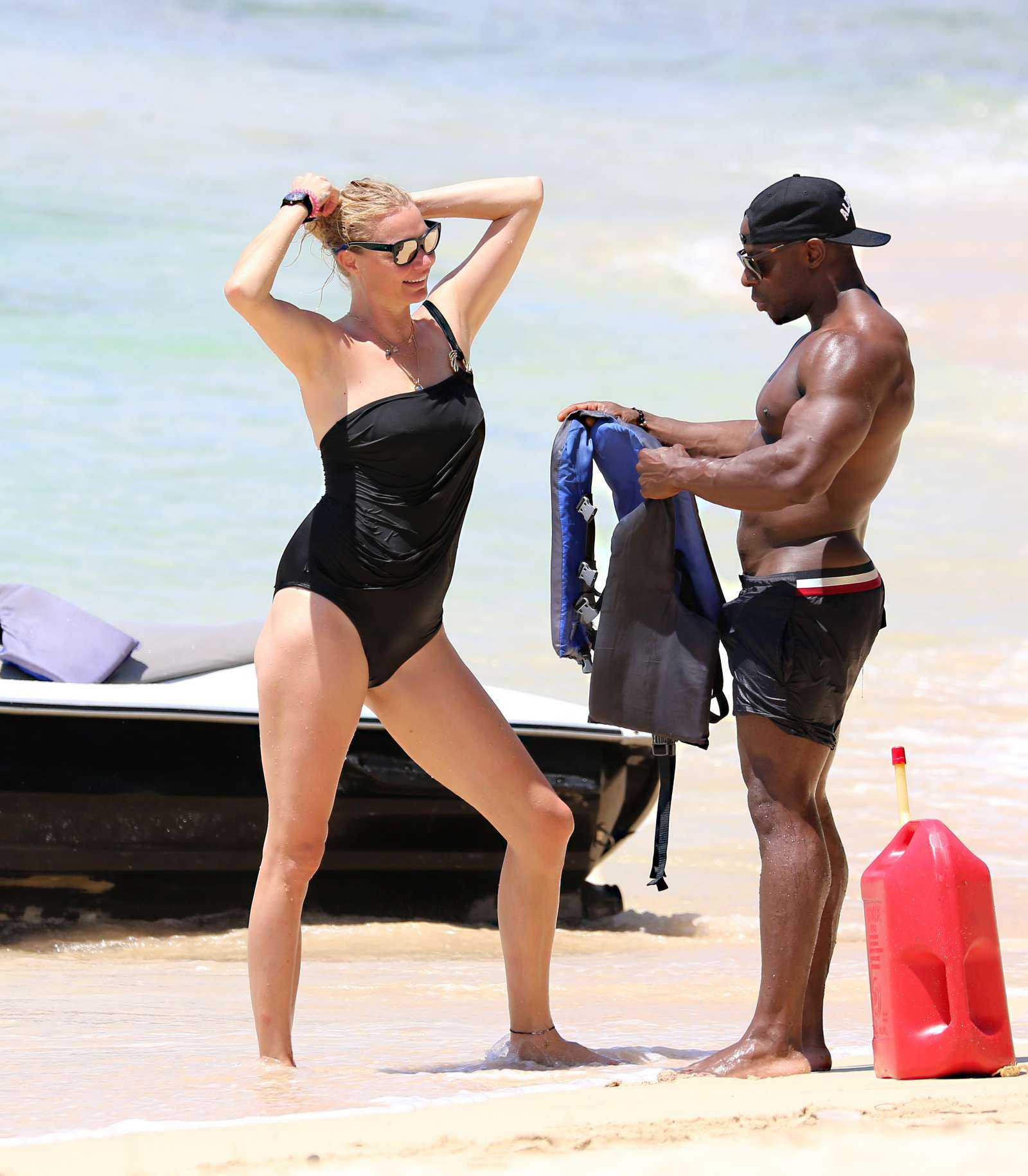Jodie Kidd in Black Swimsuit at Beach in Barbados