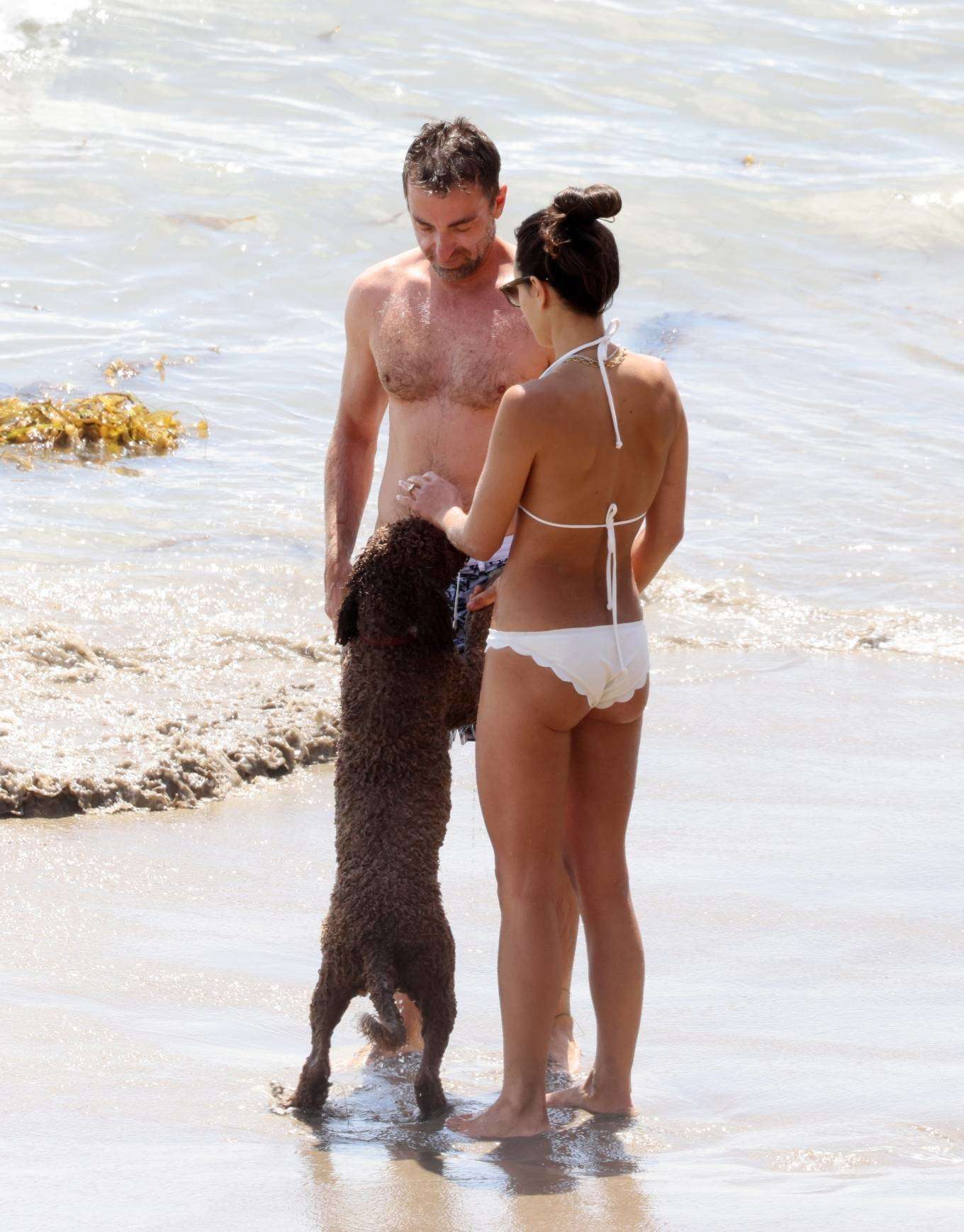 Jordana Brewster Booty in a white Scalloped Bikini on the Beach in Santa Monica