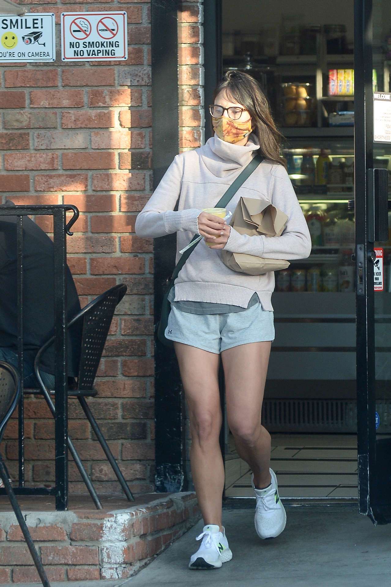 10/16/2020 EXCLUSIVE: Jordana Brewster heads out for some snacks in Los Angeles. The 40 year old ‘Fast & Furious’ star wore a face mask, pink fleece, Under Armour shorts, and white sneakers.