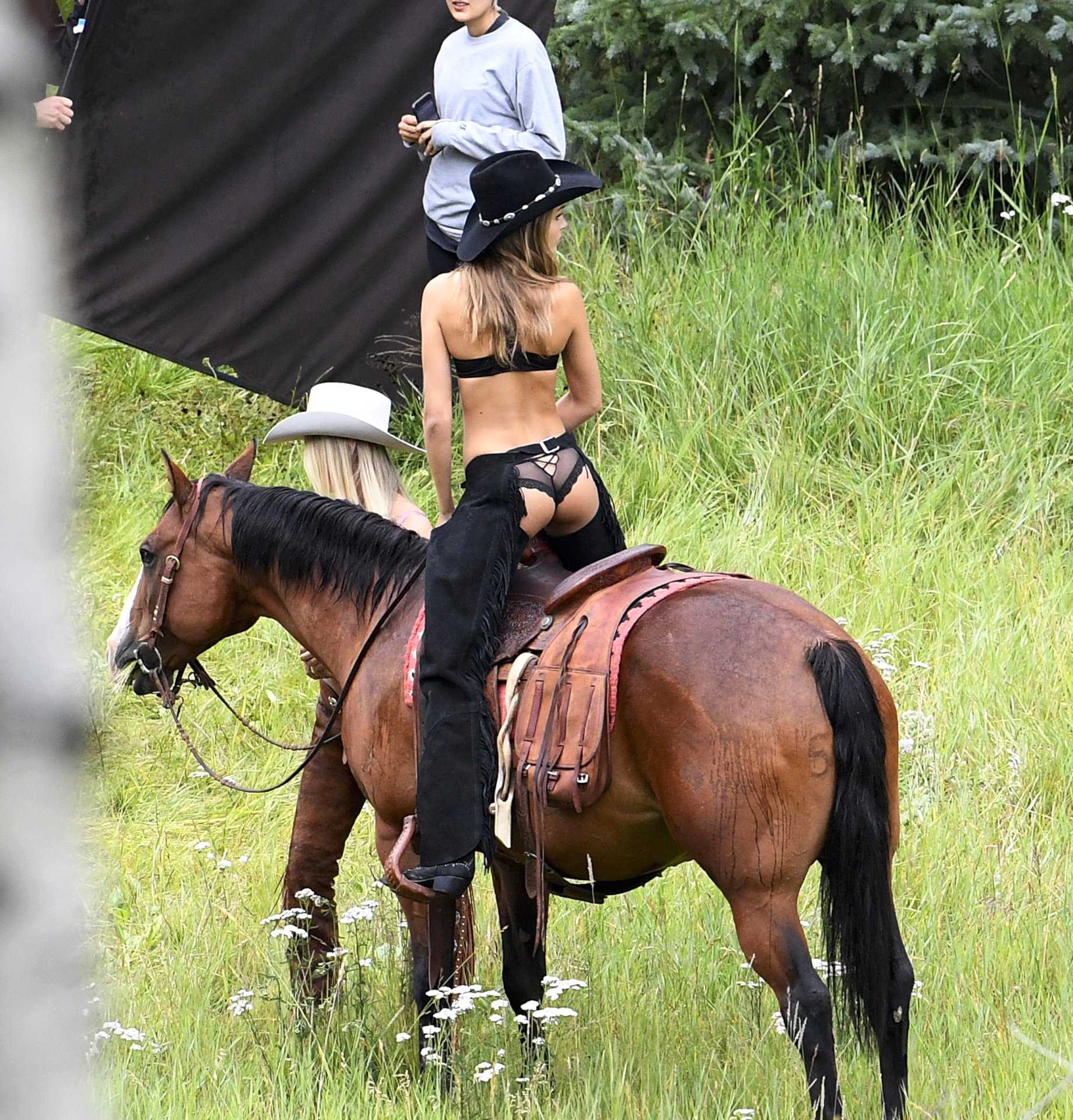 Josephine Skriver in Victoria’s Secret Holiday Catalog Photoshoot Candids in Aspen