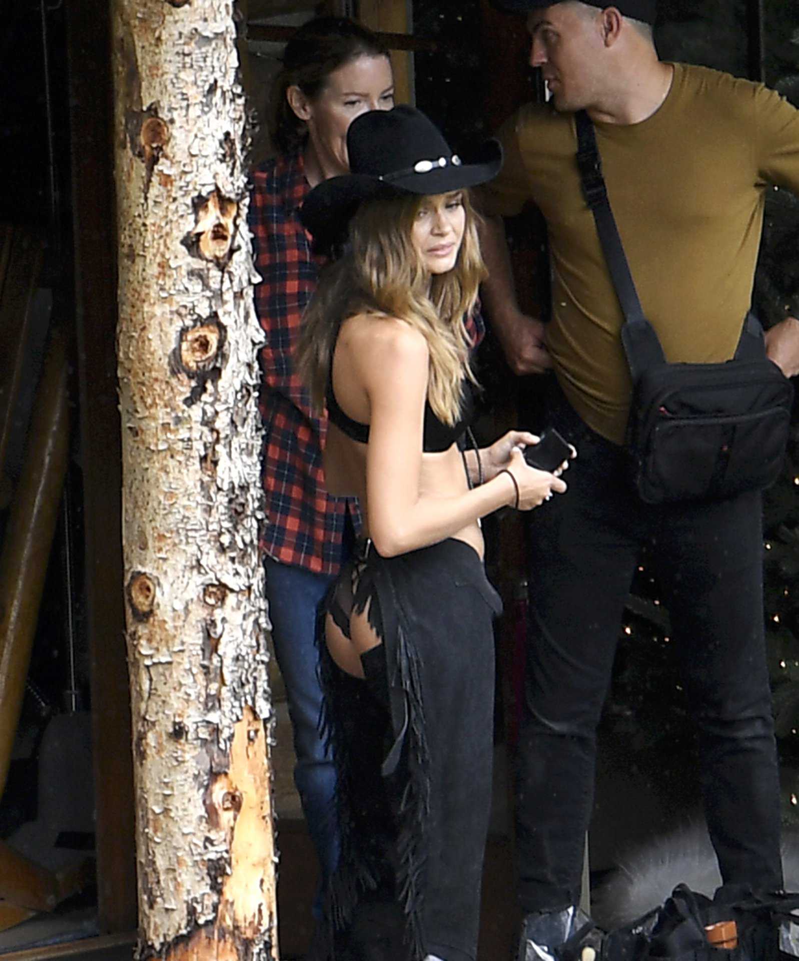 Josephine Skriver in Victoria’s Secret Holiday Catalog Photoshoot Candids in Aspen