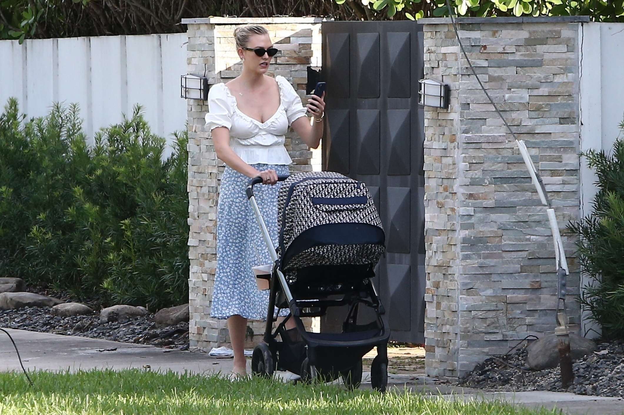 *EXCLUSIVE* Karlie Kloss goes out for a walk with her newborn baby boy Levi Joseph