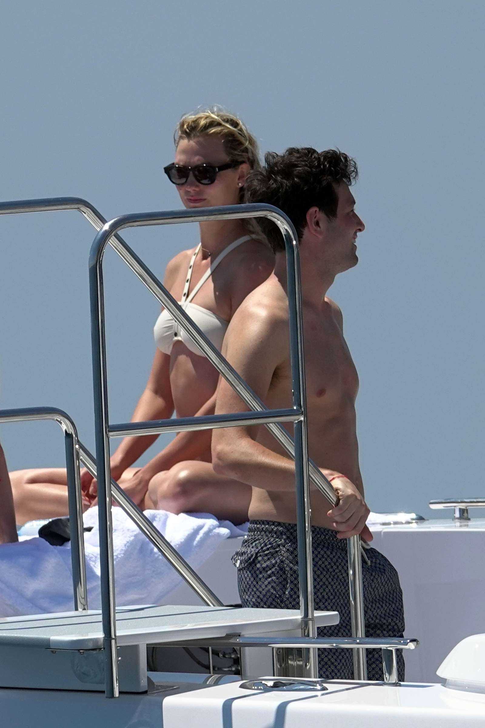 Karlie Kloss in White and Black Bikini on Vacation on a Yacht in Capri