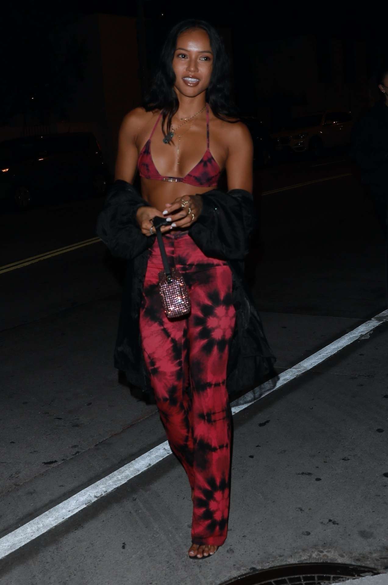 *EXCLUSIVE* – Karrueche Tran turns heads in her tie dye outfit as she heads out for dinner at Catch LA