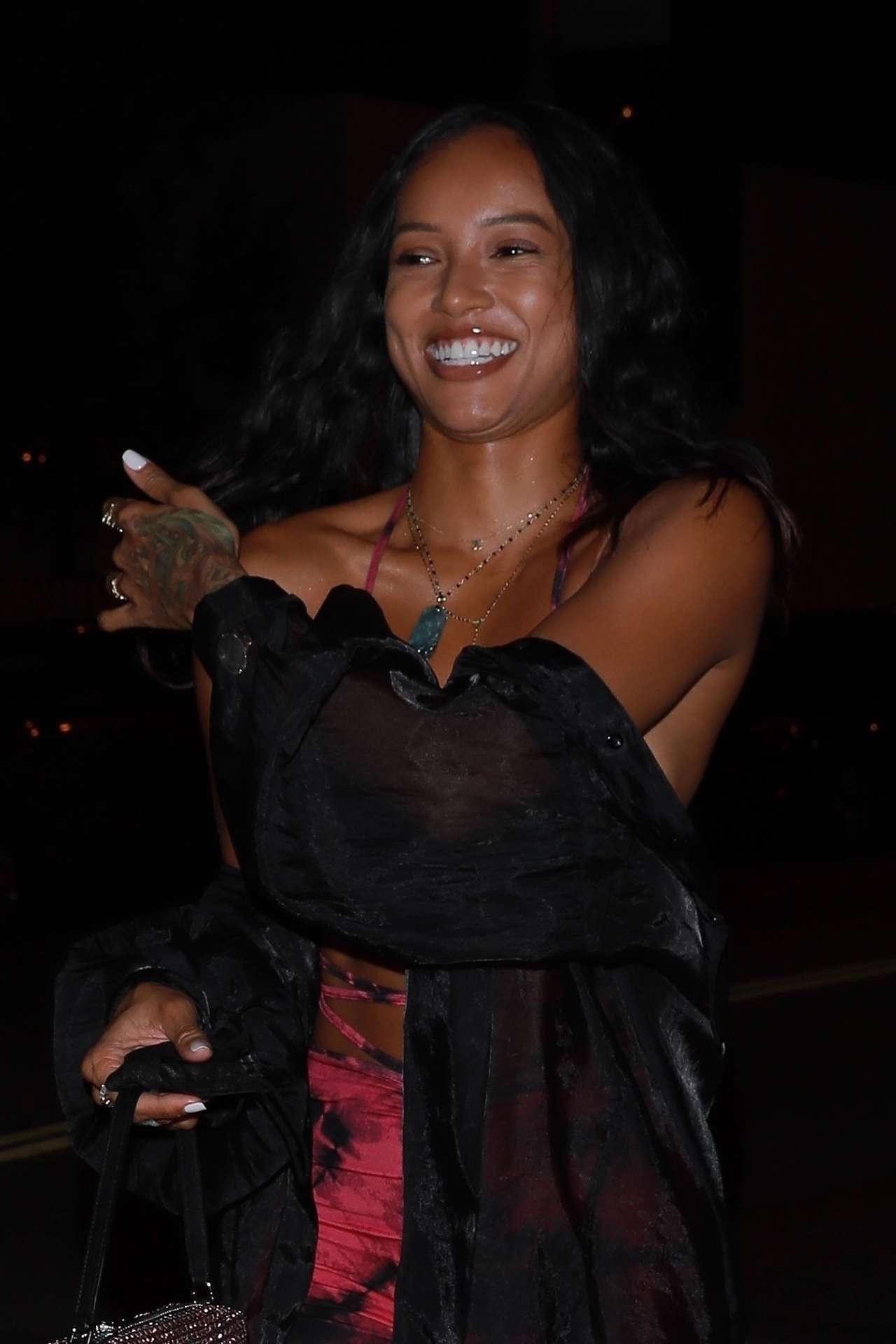 *EXCLUSIVE* – Karrueche Tran turns heads in her tie dye outfit as she heads out for dinner at Catch LA