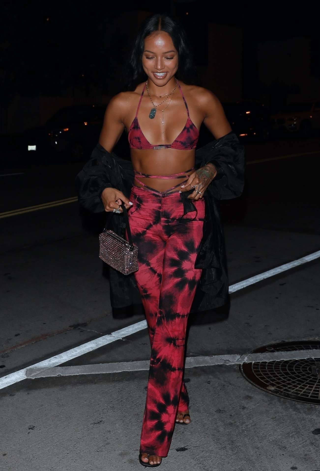 *EXCLUSIVE* – Karrueche Tran turns heads in her tie dye outfit as she heads out for dinner at Catch LA