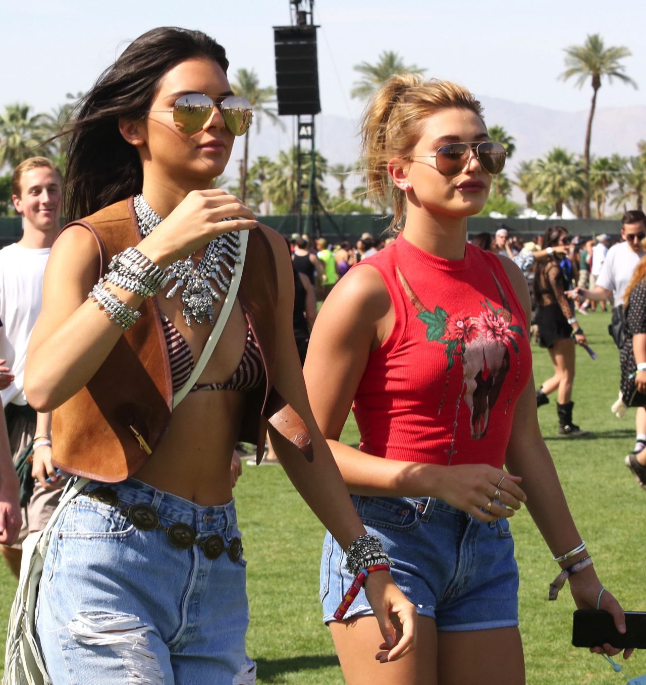Kendall Jenner and Hailey Baldwin at 2015 Coachella Valley Music and Arts Festival in Indio
