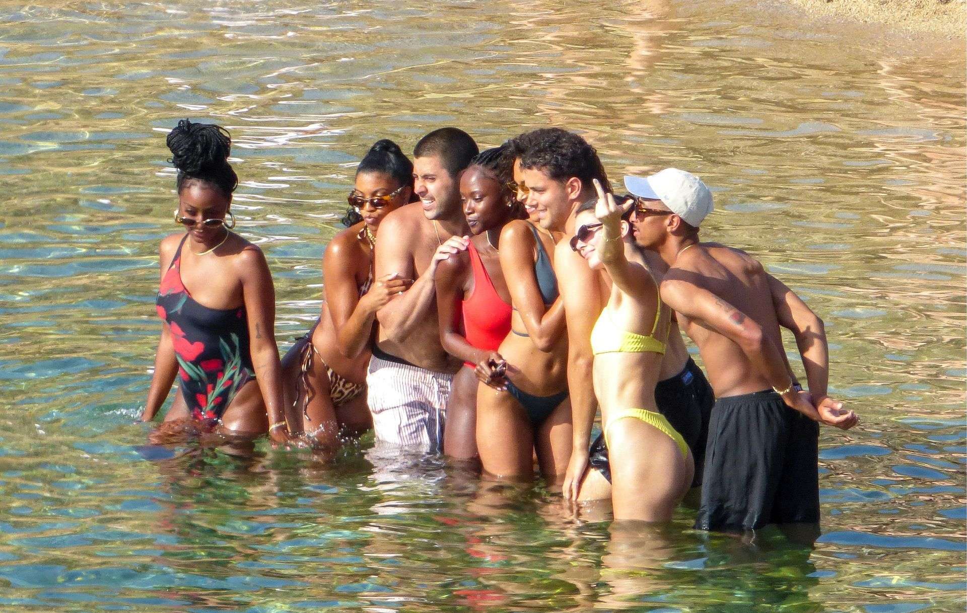 Kendall Jenner in Bikini and Friends on a Beach in Mykonos, Greece