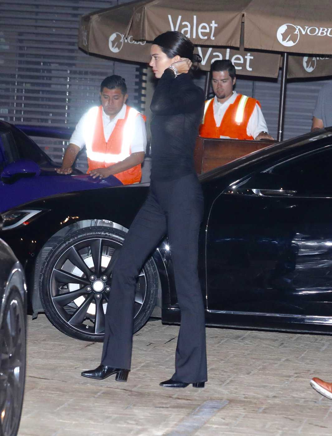 Kendall Jenner in See-Through Out at Nobu in Malibu