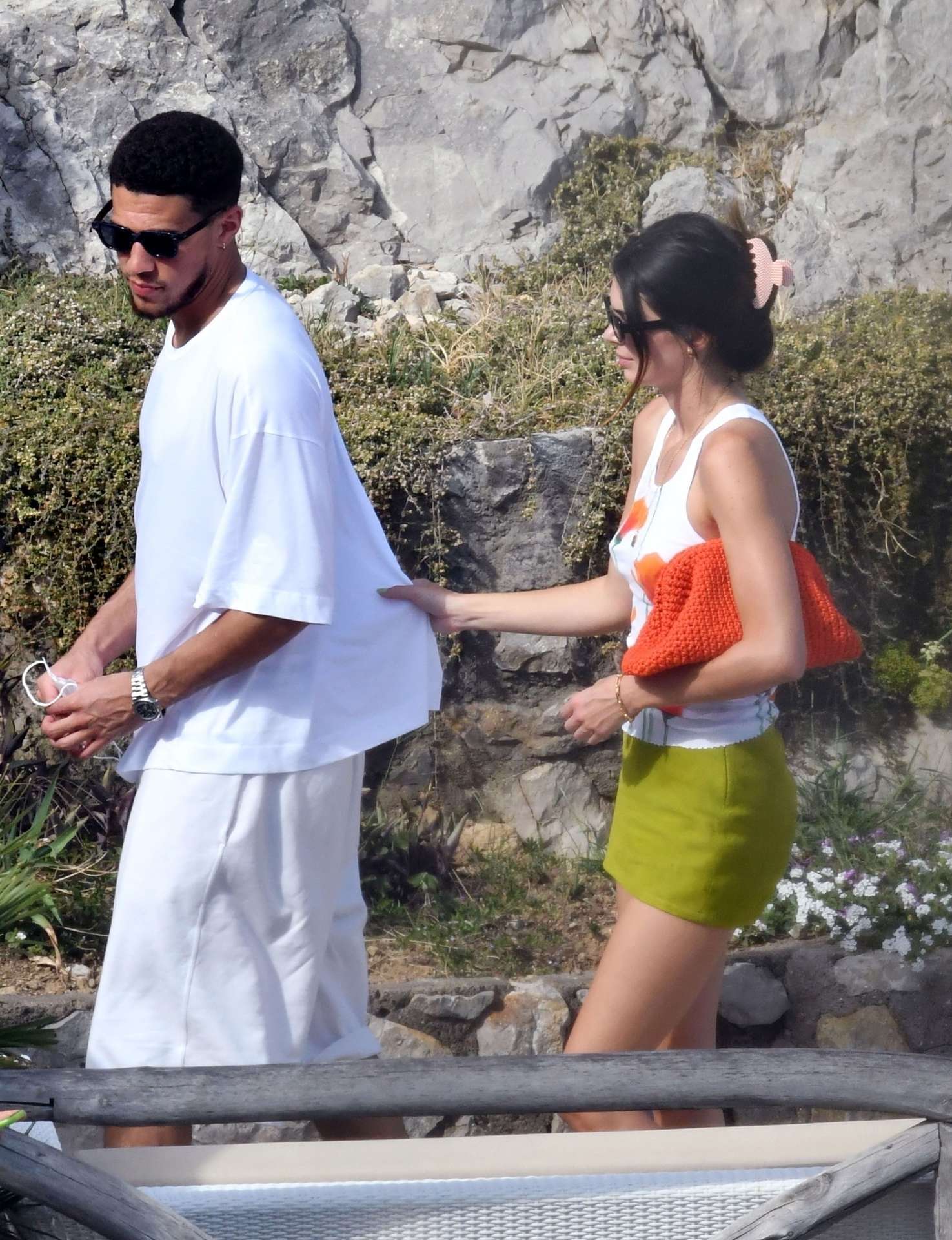 *EXCLUSIVE* Salerno, ITALY – Out in the glorious sunshine during their Italian holiday in Salerno, the American Model and Reality star Kendall Jenner packs on the PDA by holding hands with her NBA star and boyfriend Devin Booker.