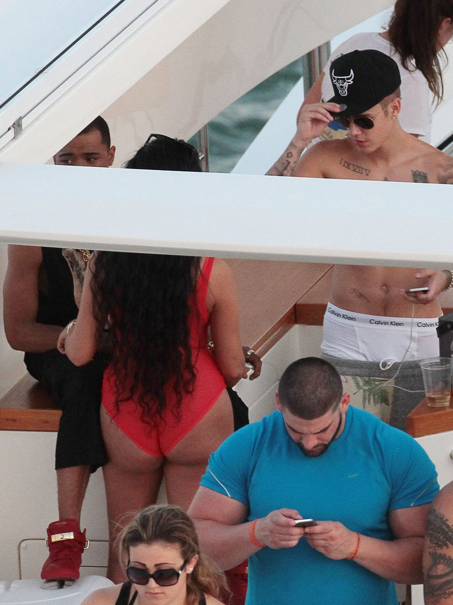Justin Bieber and Khalil Sharieff 4th of July weekend celebration on a yacht in Miami Beach. Pictured: Justin Bieber and Khalil Sharieff Ref: SPL795739 040714 Picture by: Splash News Splash News and Pictures Los Angeles: 310-821-2666 New York: 212-619-2666 London: 870-934-2666 photodesk@splashnews.com